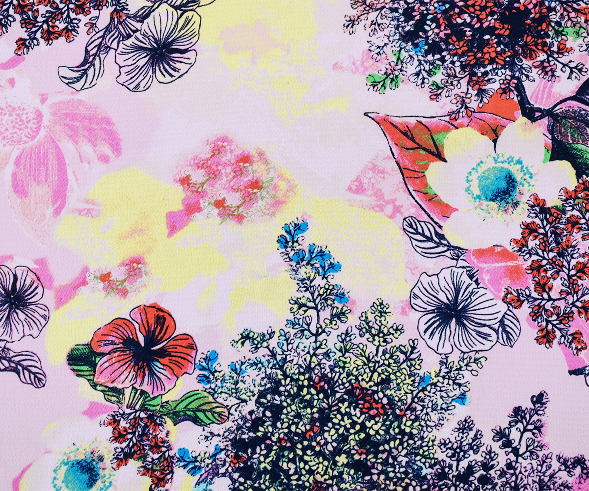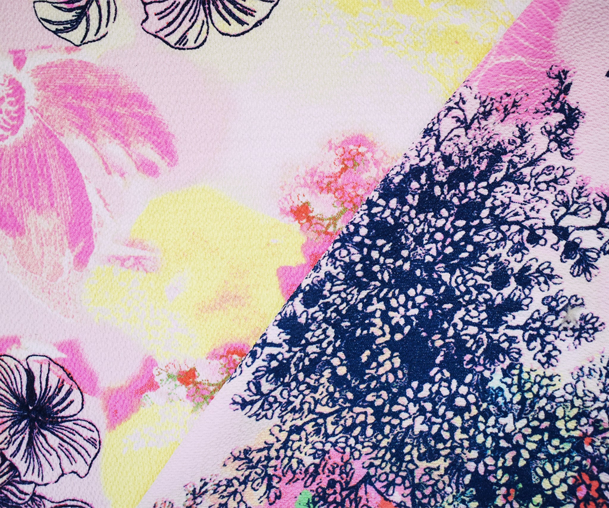 Pink-Multi Poly Stretch Spandex Floral Printed Pebble Crepe Woven Fabric