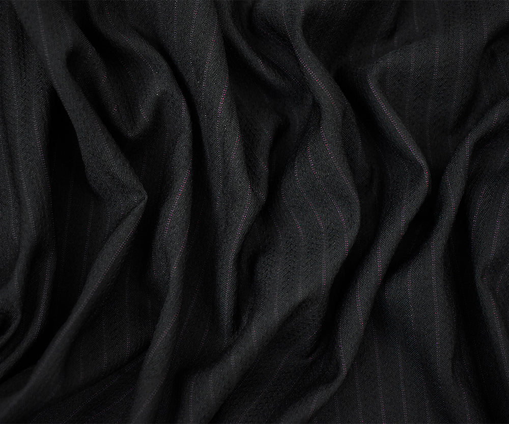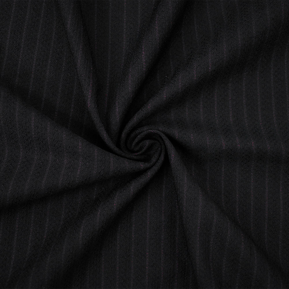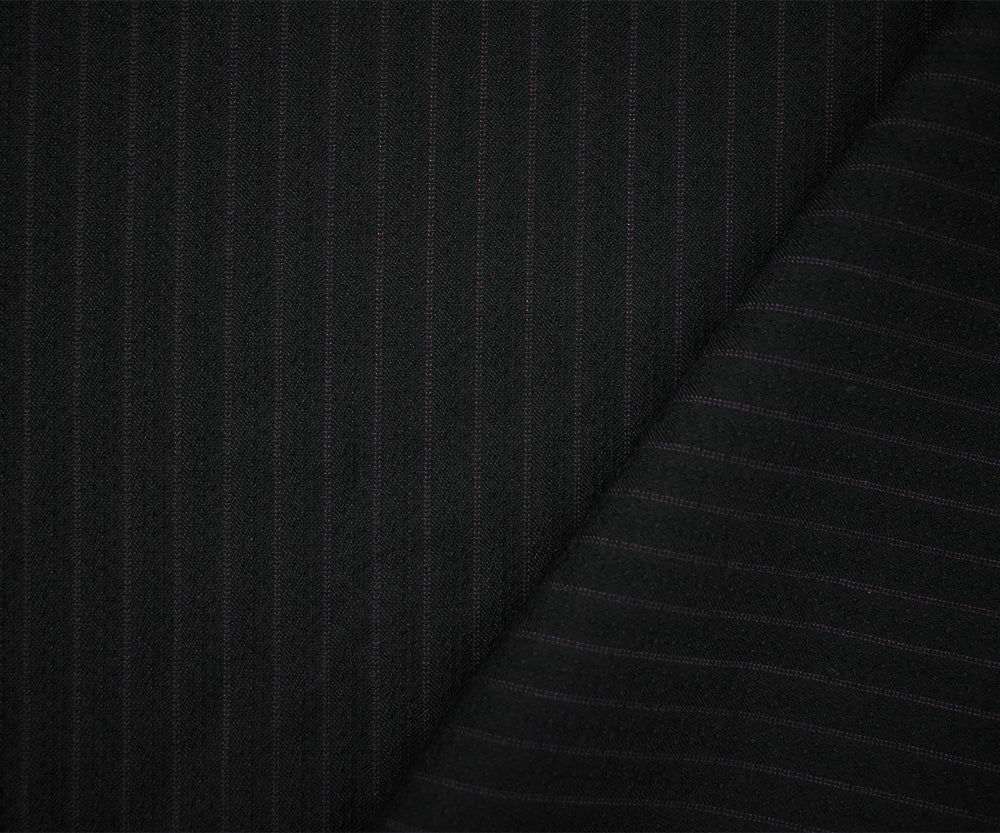Black-Deep Purple Wool Polyester Dobby Striped Shirting Fabric