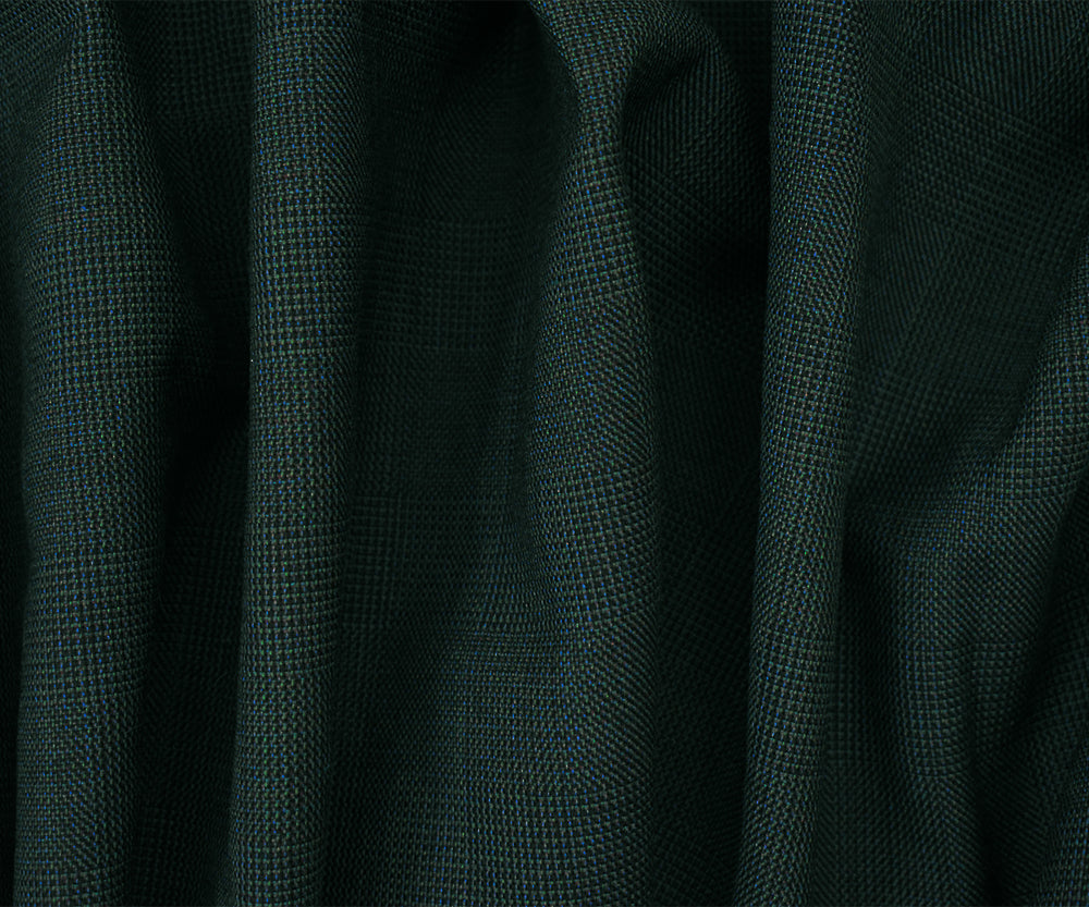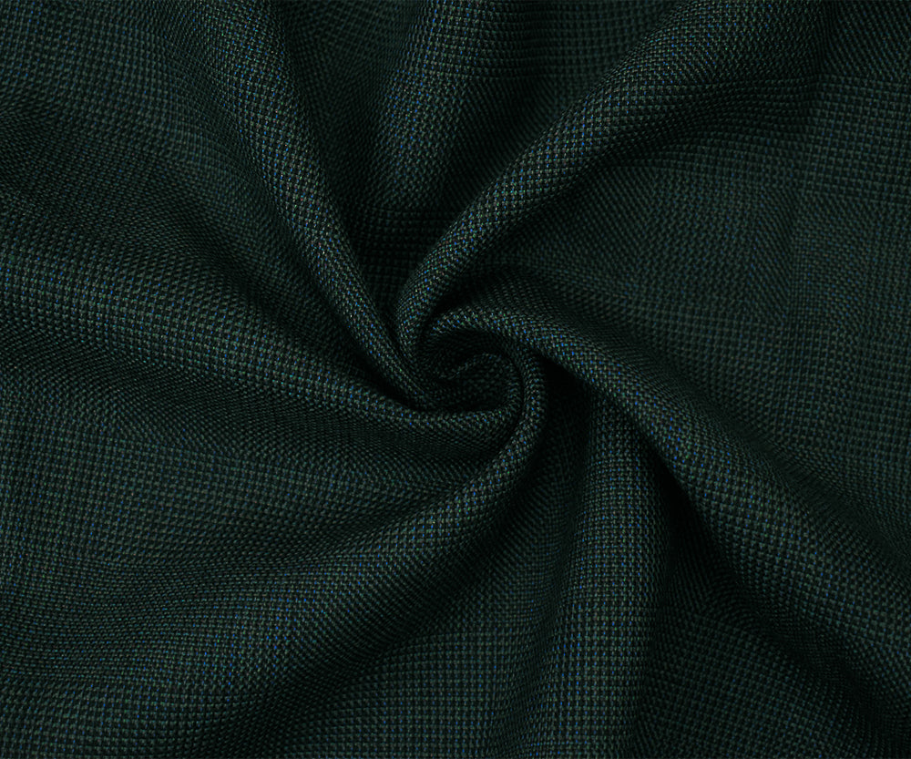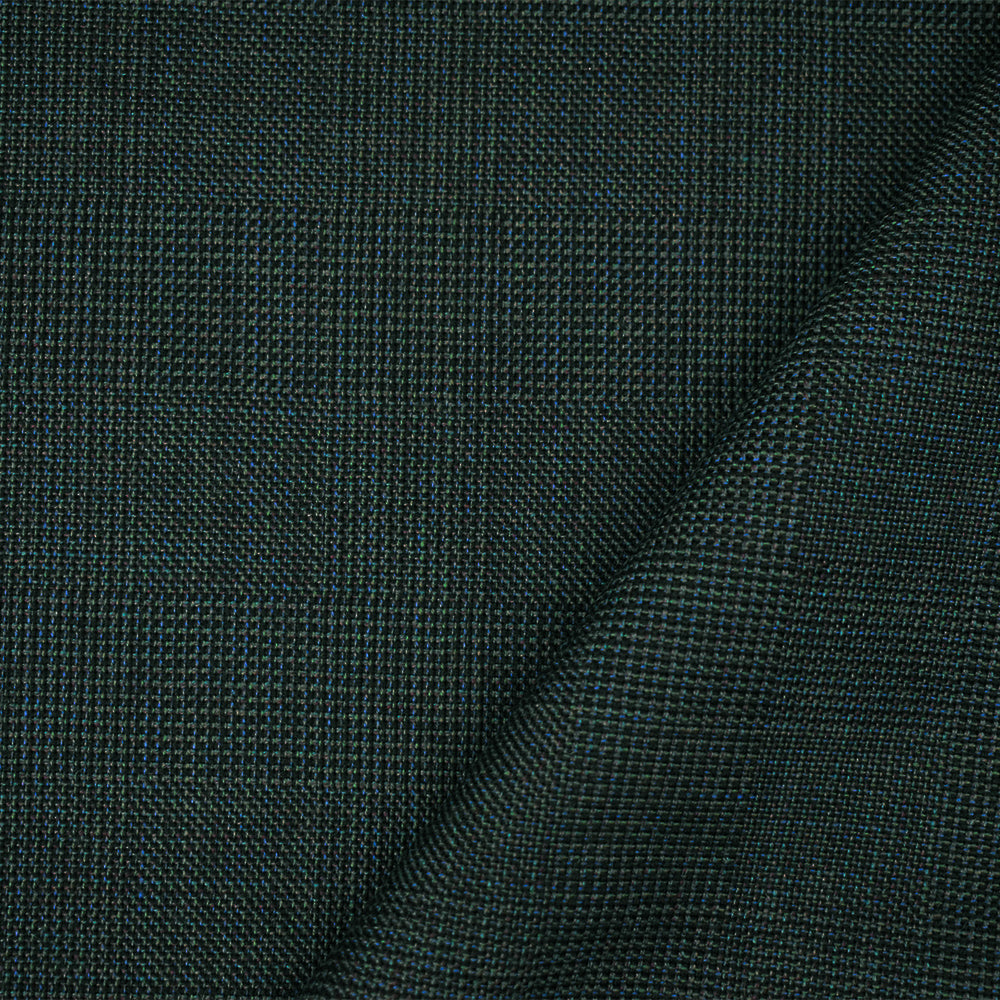 Black-Green-Multi Wool Poly Check Texture Suiting Woven Fabric