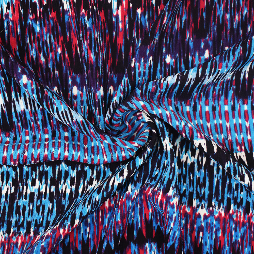 Blue-Multi Abstract Printed Stretch Poly Ghost Crepe Woven Fabric