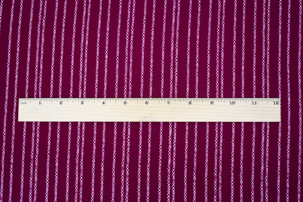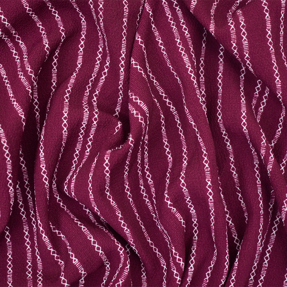 Magenta-White Mini Aztec Stripe Pattern Printed Poly Crepe Georgette Fabric