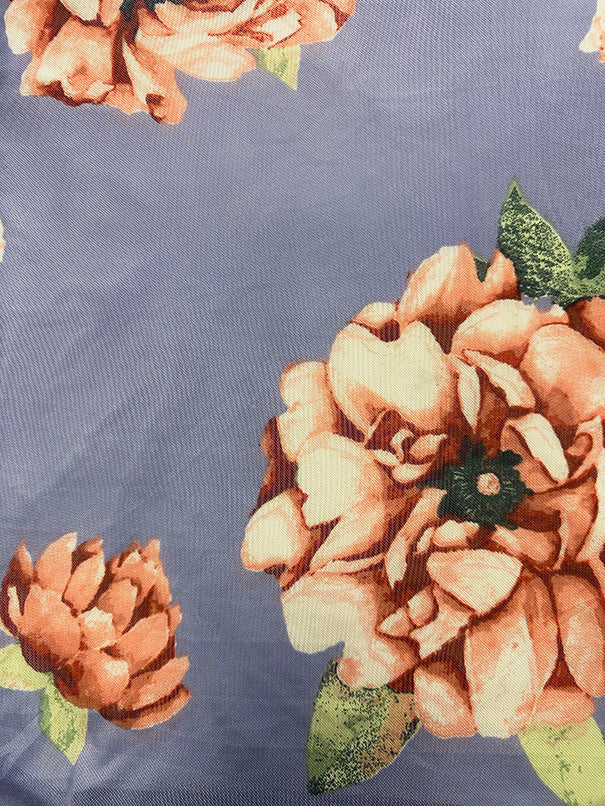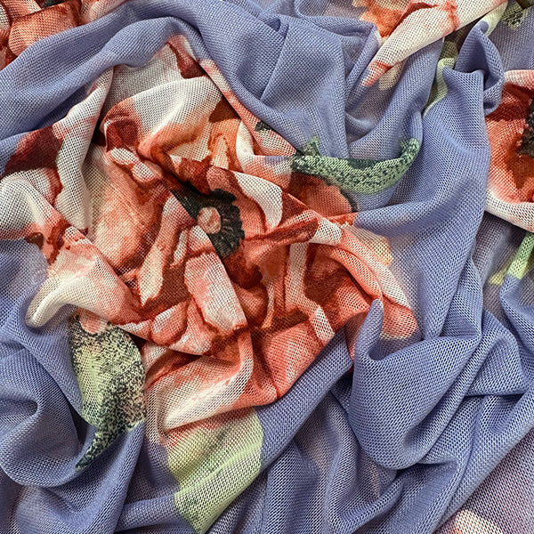 Periwinkle Multi Floral Print Stretch Mesh Fabric