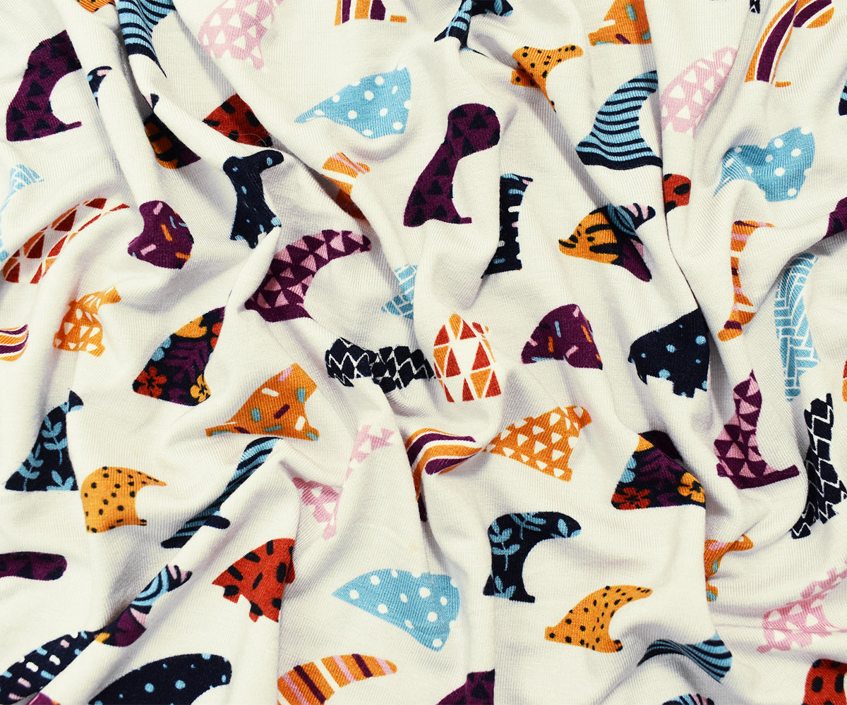 Pink-Multi Rayon Modal Hat Print Stretch Spandex Jersey Knit Fabric