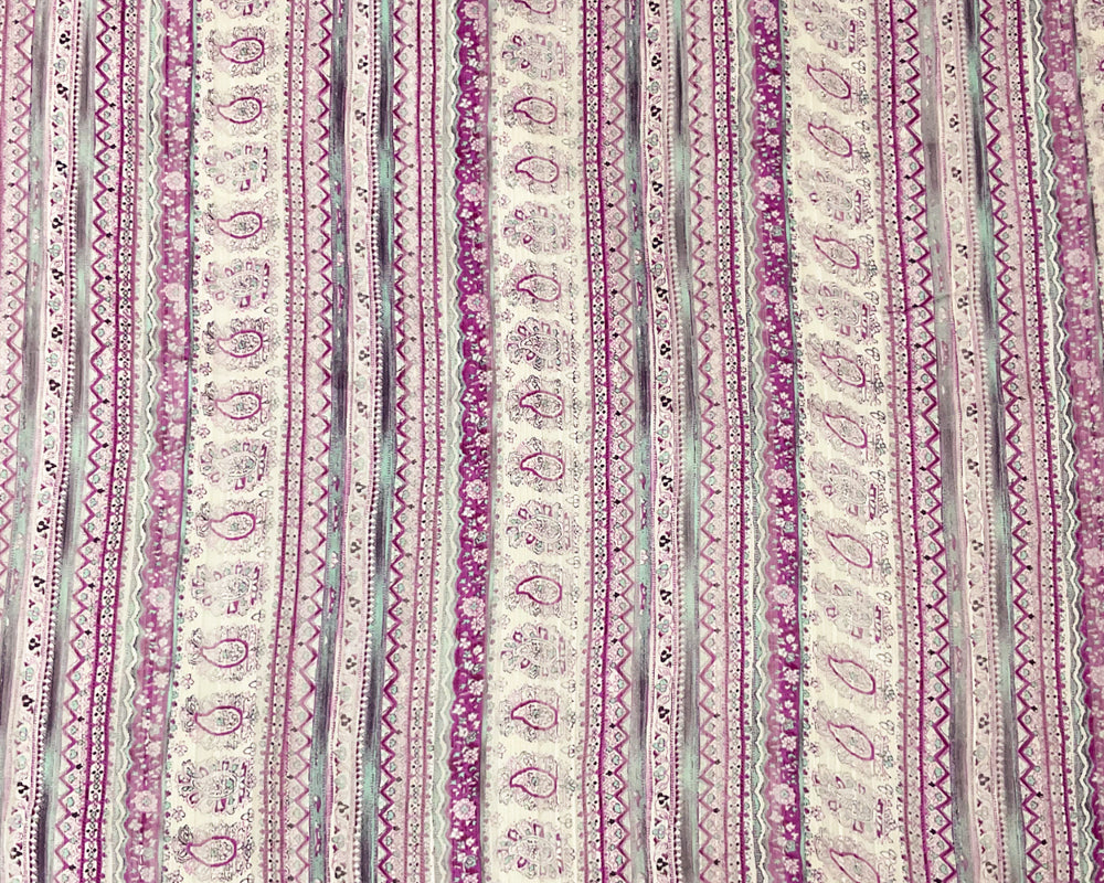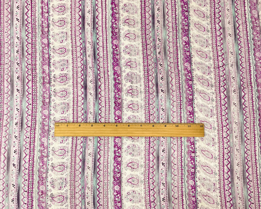 Purple-Multi Paisley Printed Satin Stripe Chiffon Woven Fabric