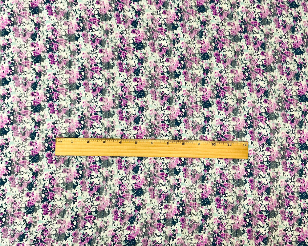 Purple-Multi Poly Floral Print Satin Stripe Chiffon Woven Fabric