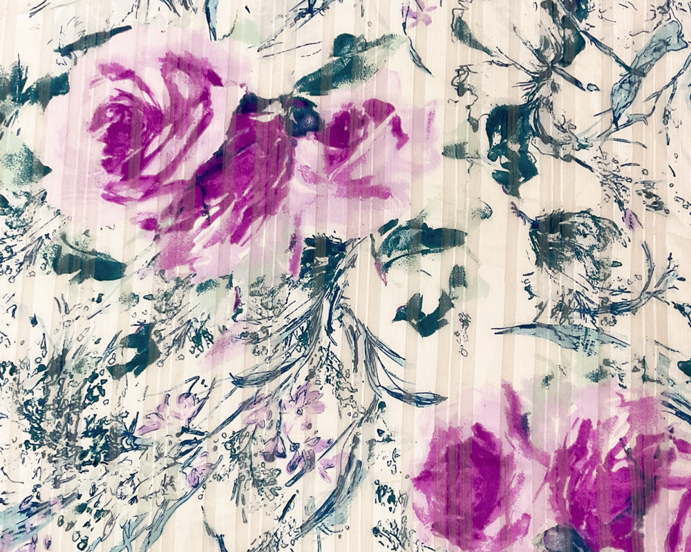 Purple-Multi Poly Floral Print Satin Stripe Chiffon Woven Fabric