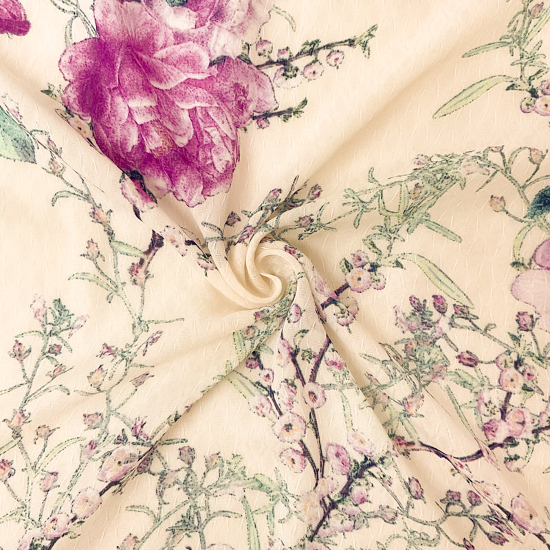 Purple-Multi Poly Floral Printed Ogee Dobby Chiffon Woven Fabric