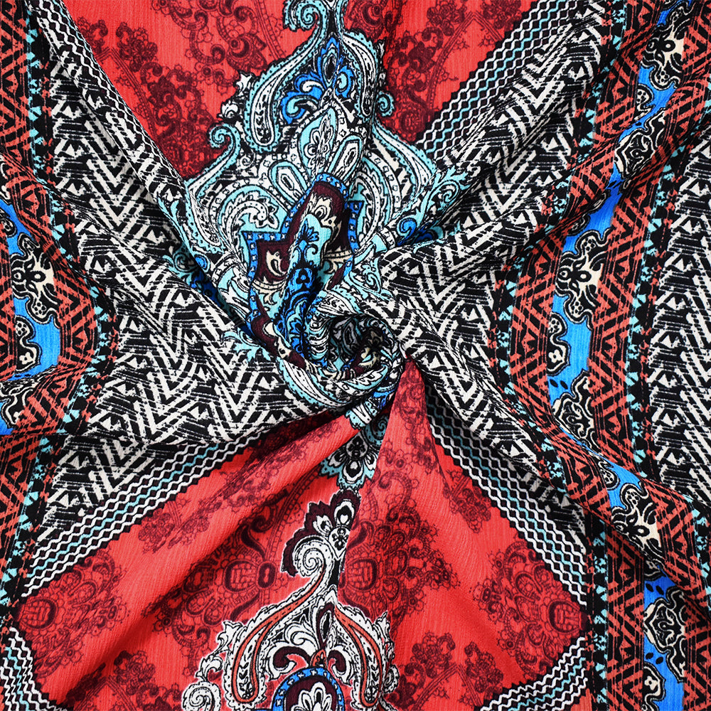 Red-Teal-Multi Poly Aztec Baroque Printed Textured Dobby Woven Fabric