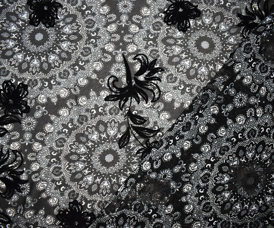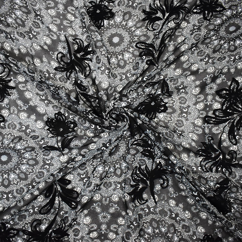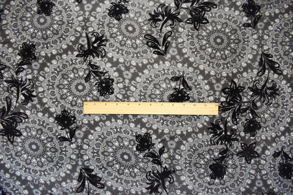Black Poly Medallion Print Floral Burnout Chiffon Woven Fabric