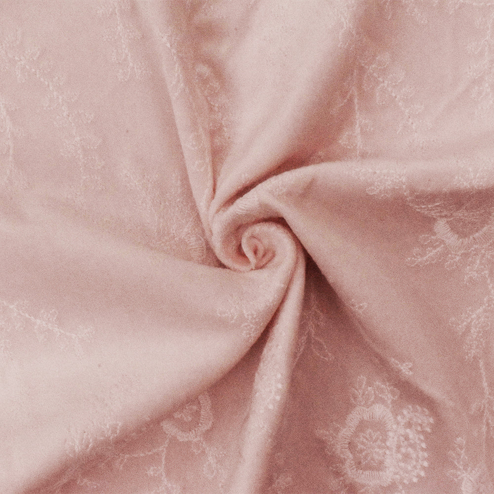 Baby Pink Floral Embroidered Cotton Velveteen Woven Fabric