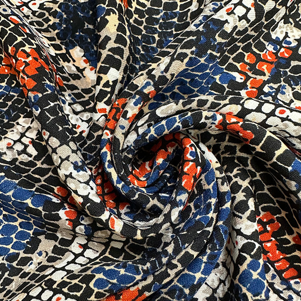 Blue Multi Paisley Print Poly Crepe de Chine Fabric