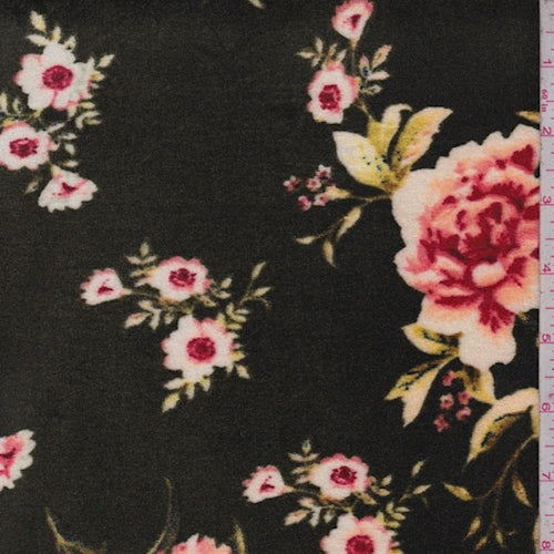 Moss/Coral Floral Panne Velvet Knit Fabric
