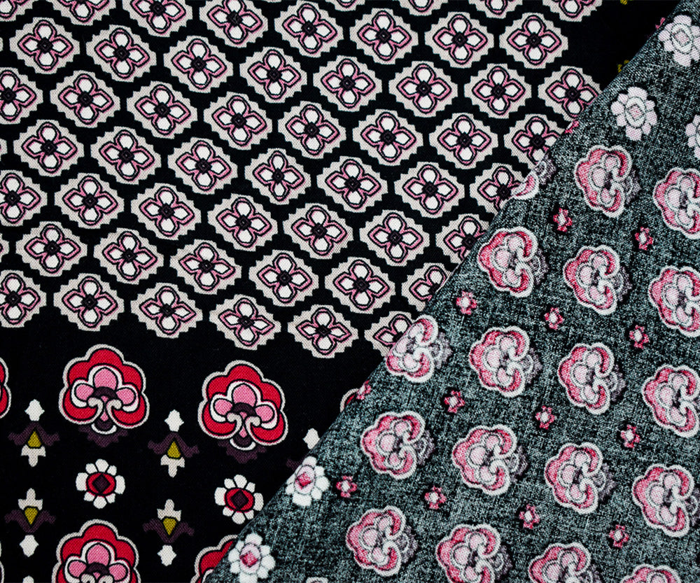 Black-Red-Multi Rayon Floral Patch Printed Challis Woven Fabric