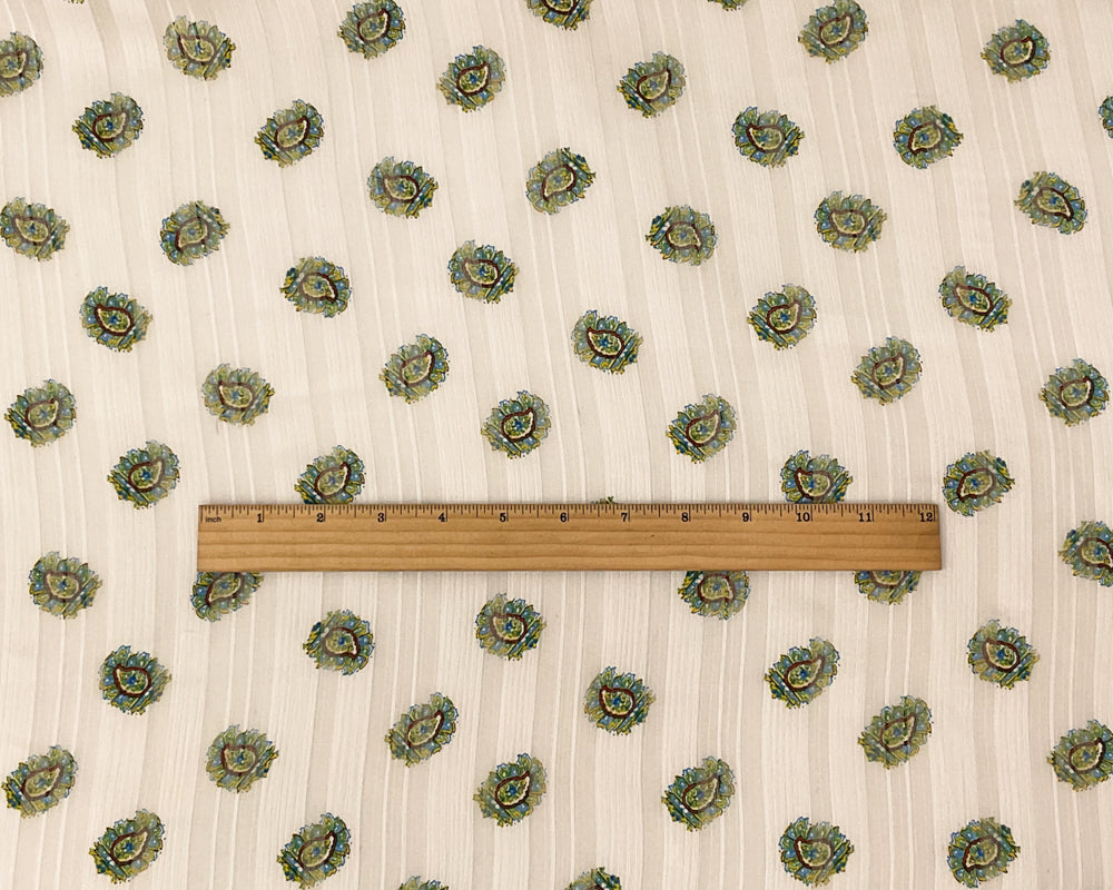 Ivory-Multi Poly Paisley Print Satin Stripe Chiffon Woven Fabric