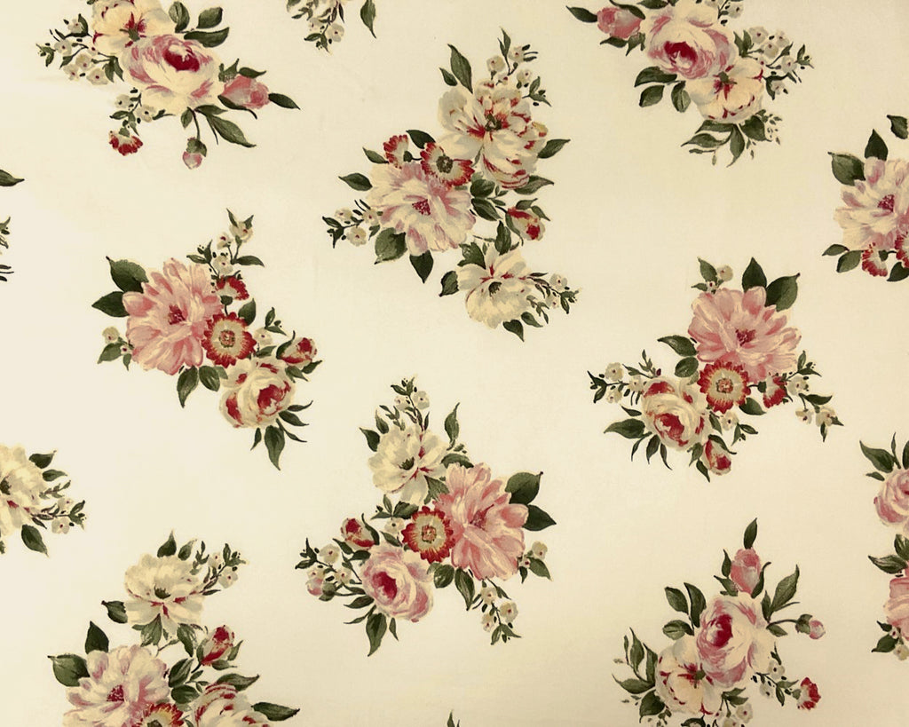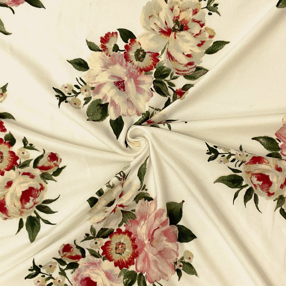 -Ivory-Multi Poly Stretch Spandex Floral Print Double Brush Jersey Knit Fabric