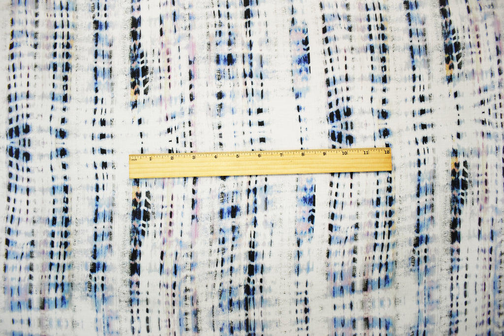 White-Blue-Multi Cotton Famous Maker Abstract Printed Batiste Woven Fabric