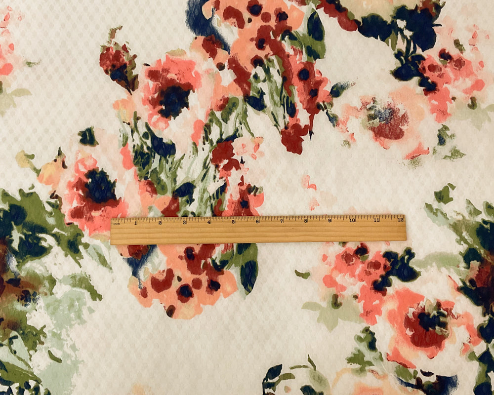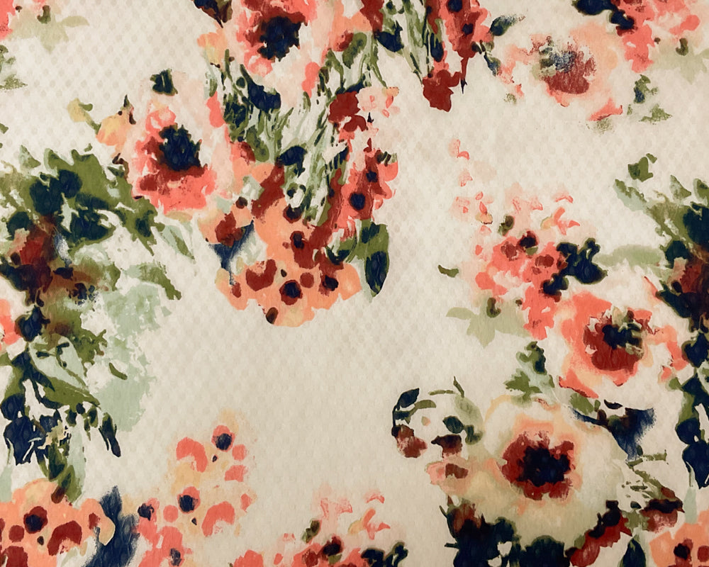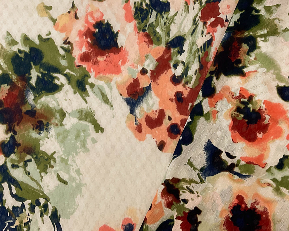 White-Multi Poly Floral Print Ogee Shape Dobby Chiffon Woven Fabric