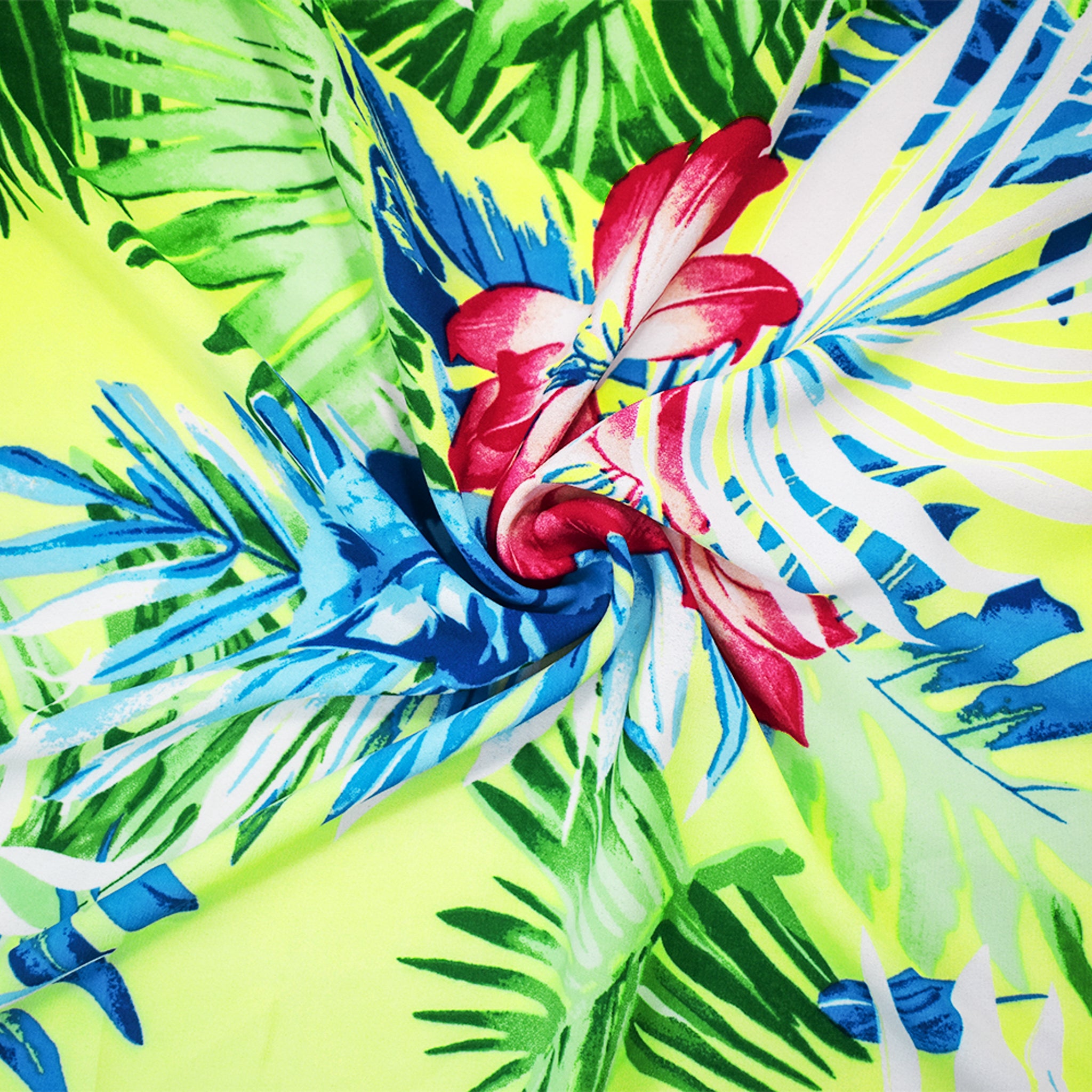 Yellow-Multi Poly Floral Leaves Printed Momie Crepe Georgette Woven Fabric