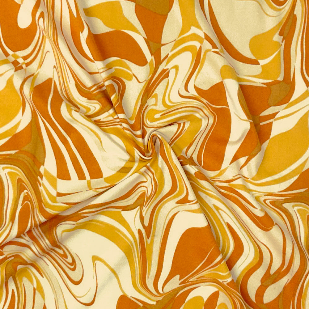 Yellow-Orange Poly Spandex Stretch Abstract Print DB Jersey Knit Fabric