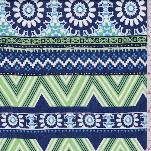 Ocean/Lime/White Medallion Stripe Rayon Crinkle Fabric