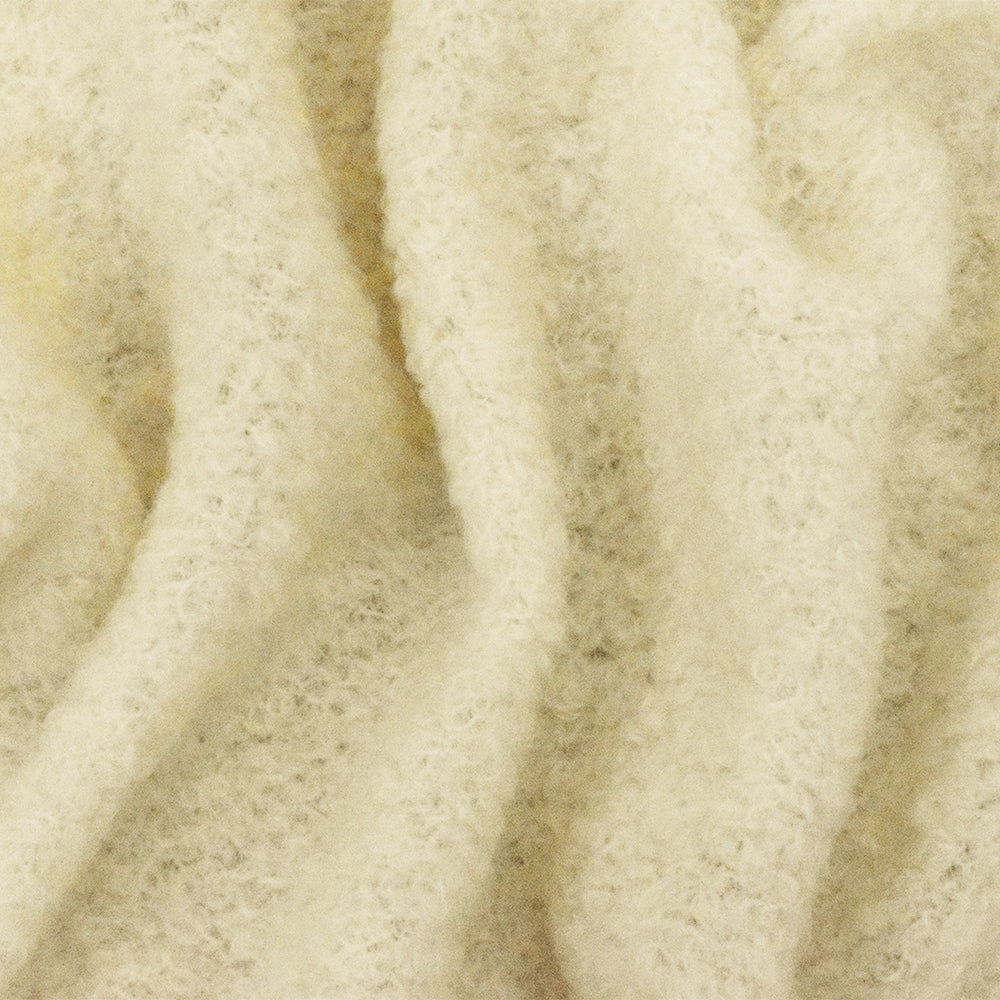 Ivory Wool Polyester Texture Boucle Fleece Knit Jacketing Fabric