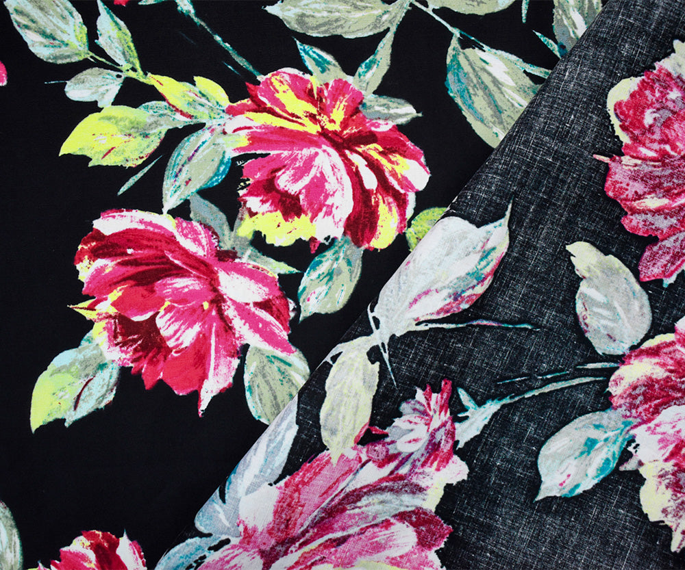 Black-Pink-Multi Cotton Floral Printed Stretch Spandex Poplin Woven Fabric