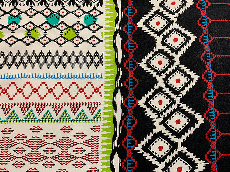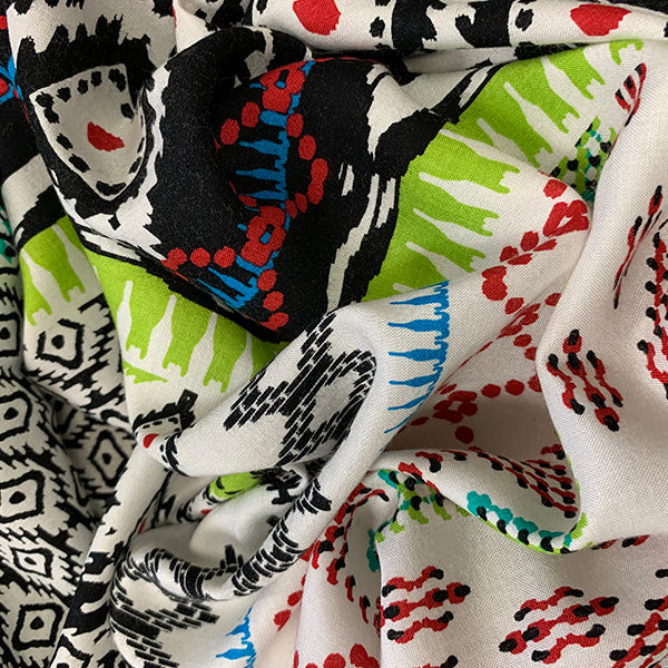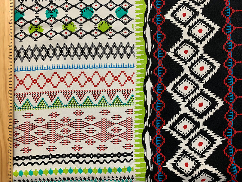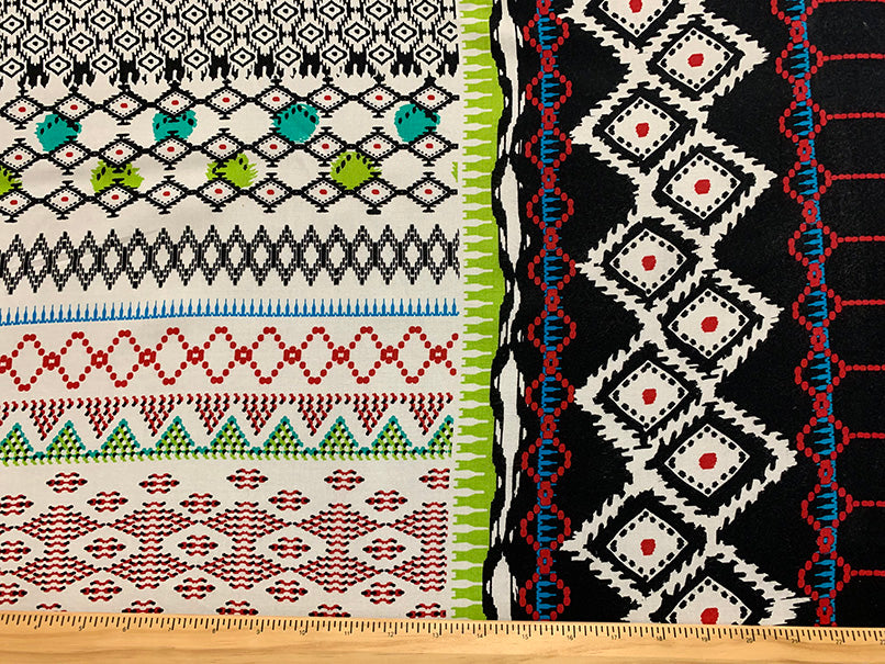 Black and Lime Abstract Stripe Print Rayon Challis Fabric