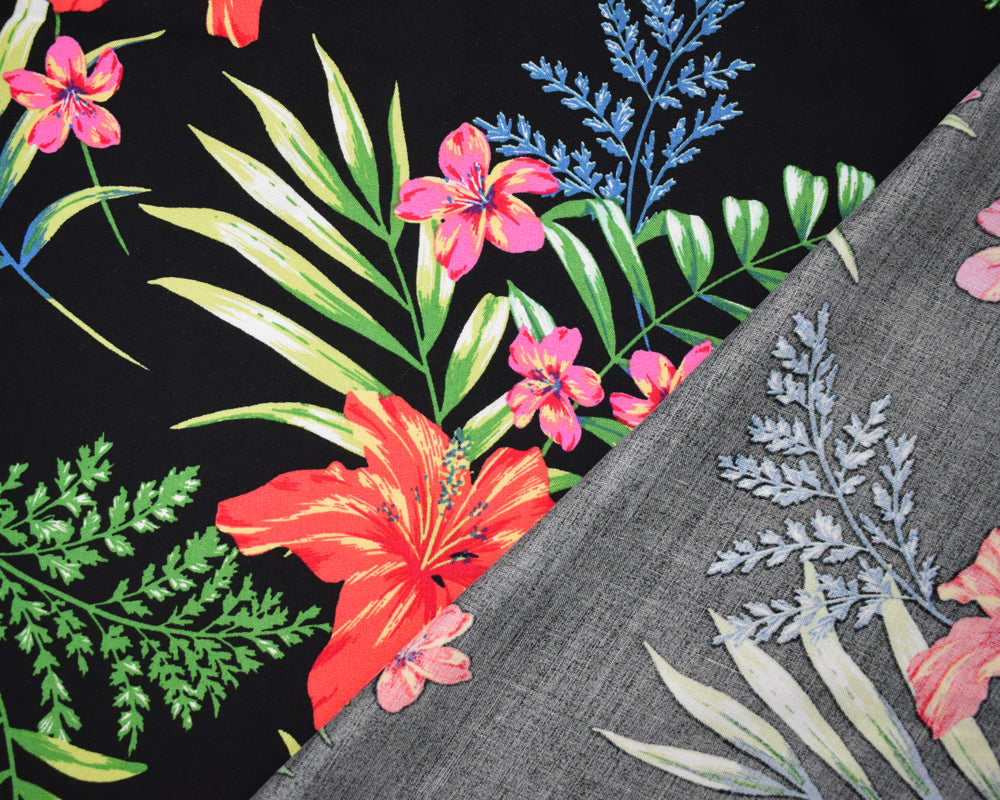 Black-Green-Multi Rayon Floral Printed Challis Woven Fabric