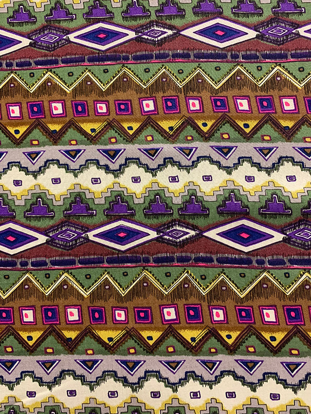 Brown Multi Aztec Stripe Print Rayon Challis Fabric