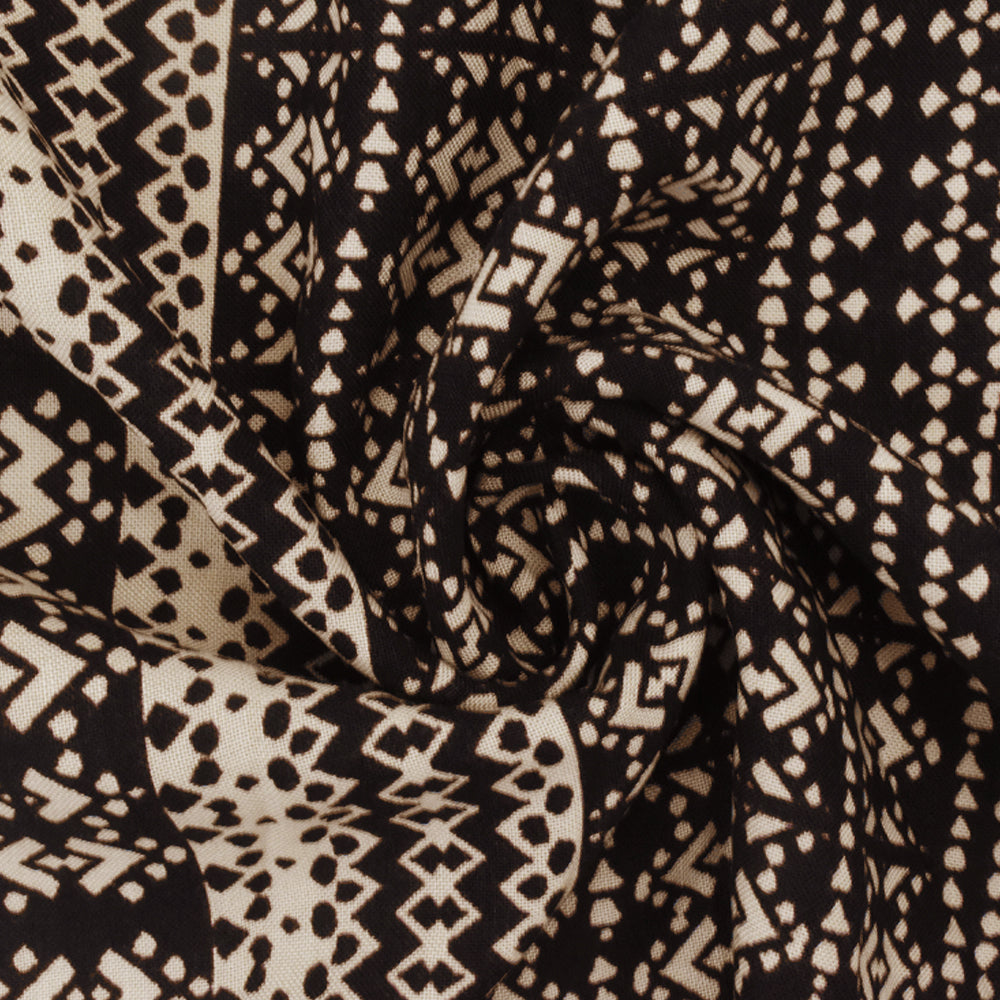 -100% rayon challis fabric printed with an Aztec inspired pattern