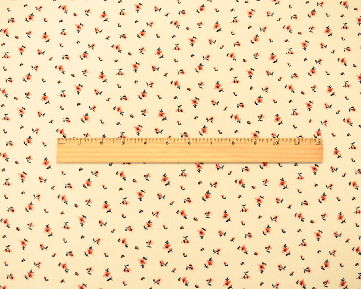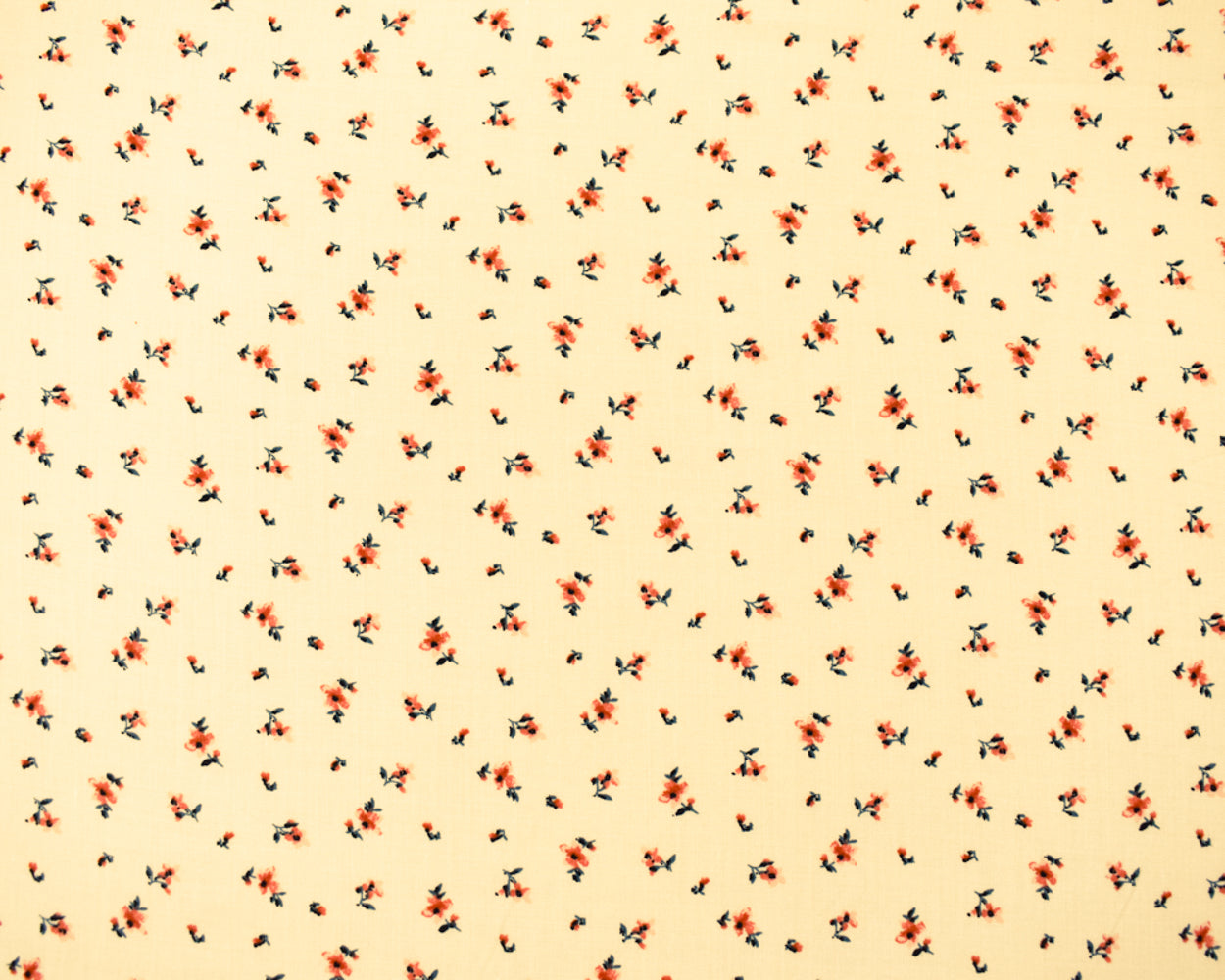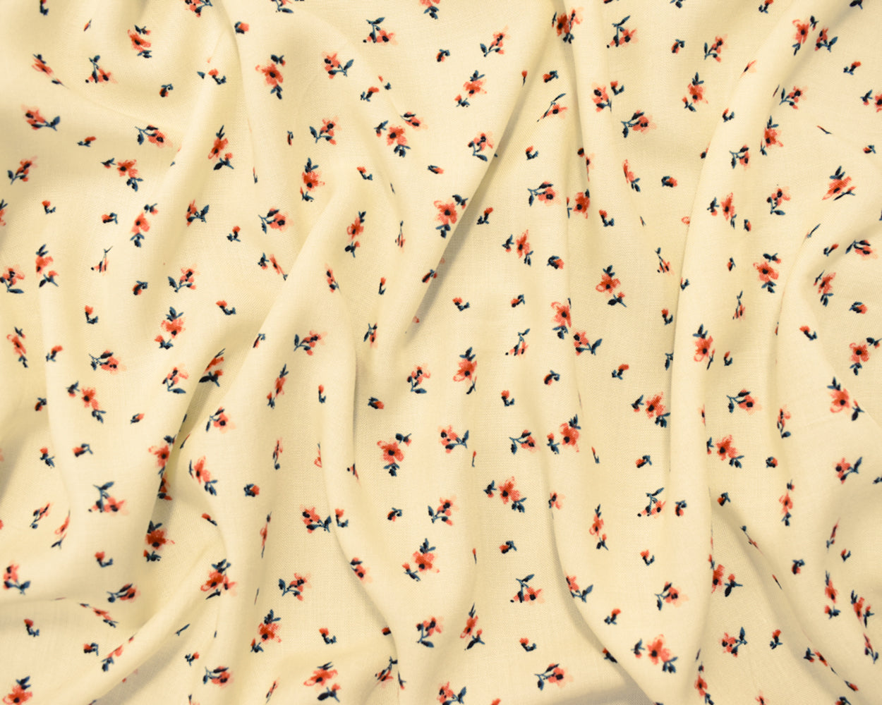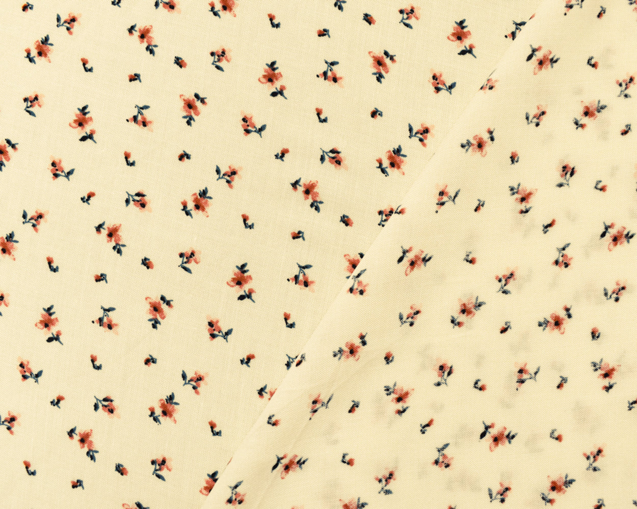 Ivory-Coral-Multi Rayon Ditsy Floral Printed Challis Woven Fabric
