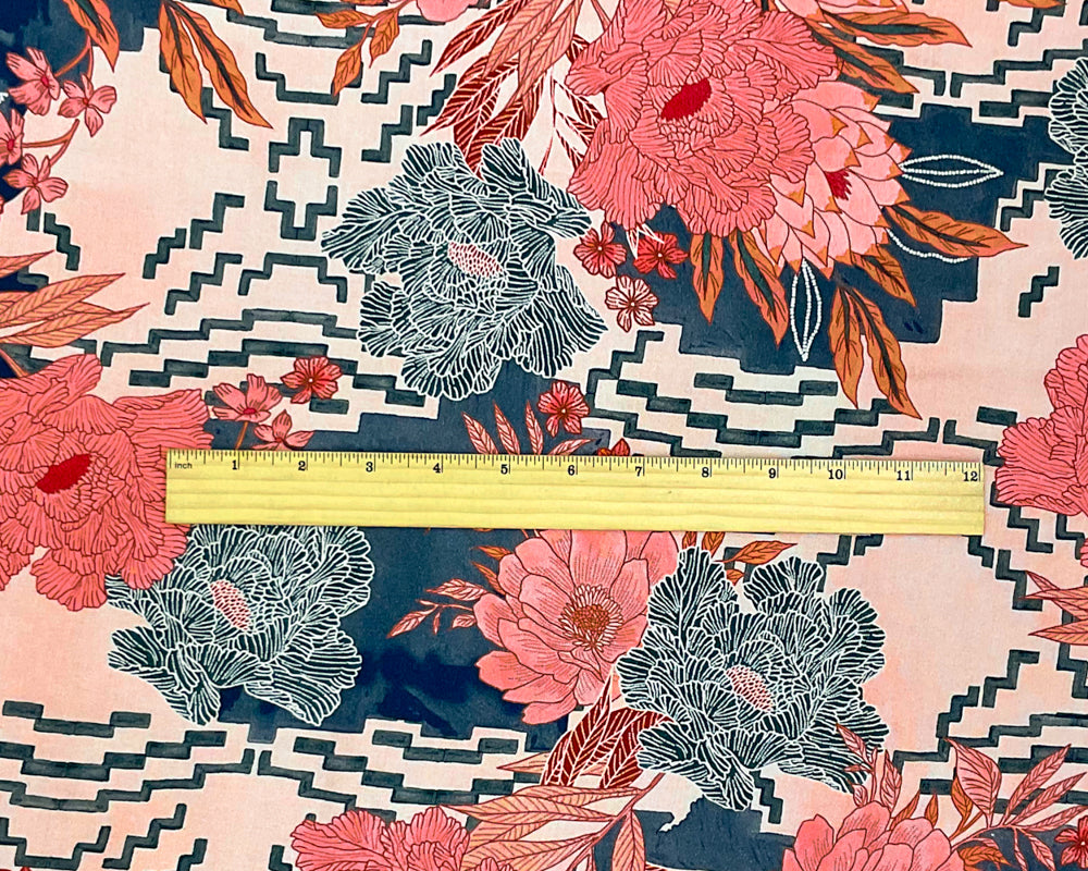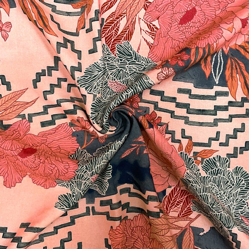 Orange-Gray-Multi Rayon Floral Printed Challis Woven Fabric