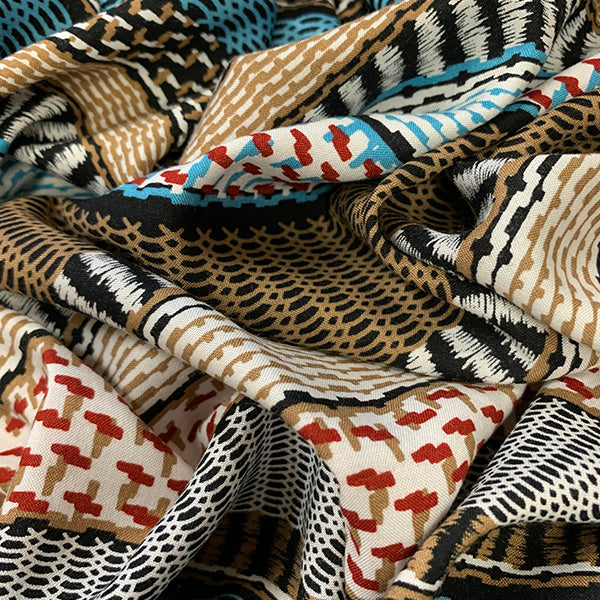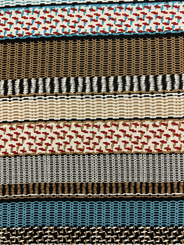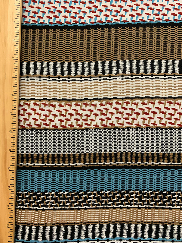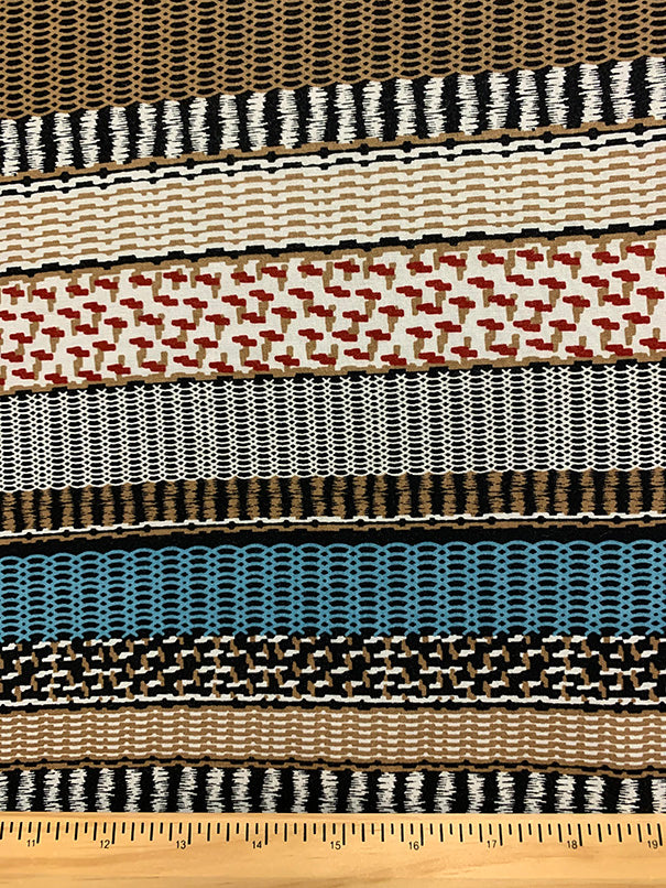 Red and Brown Multi Stripe Print Rayon Challis Fabric