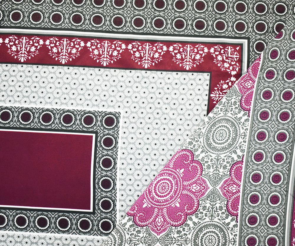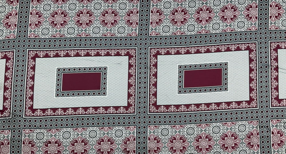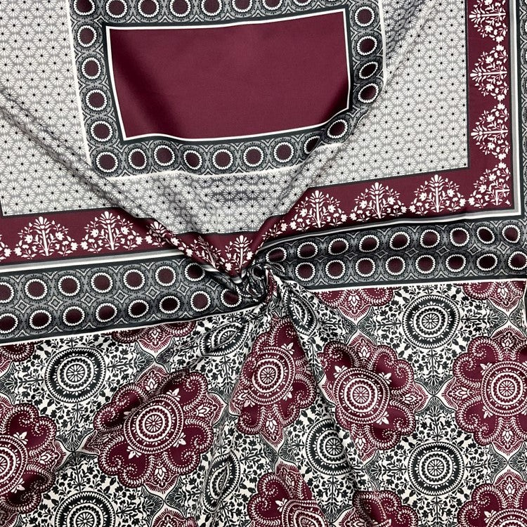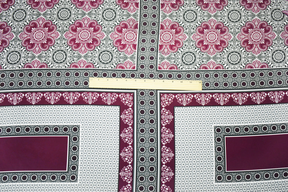 Burgundy-Black-Multi Poly Border Medallion Printed Charmeuse Woven Fabric