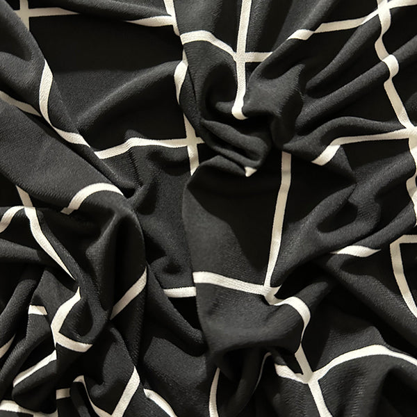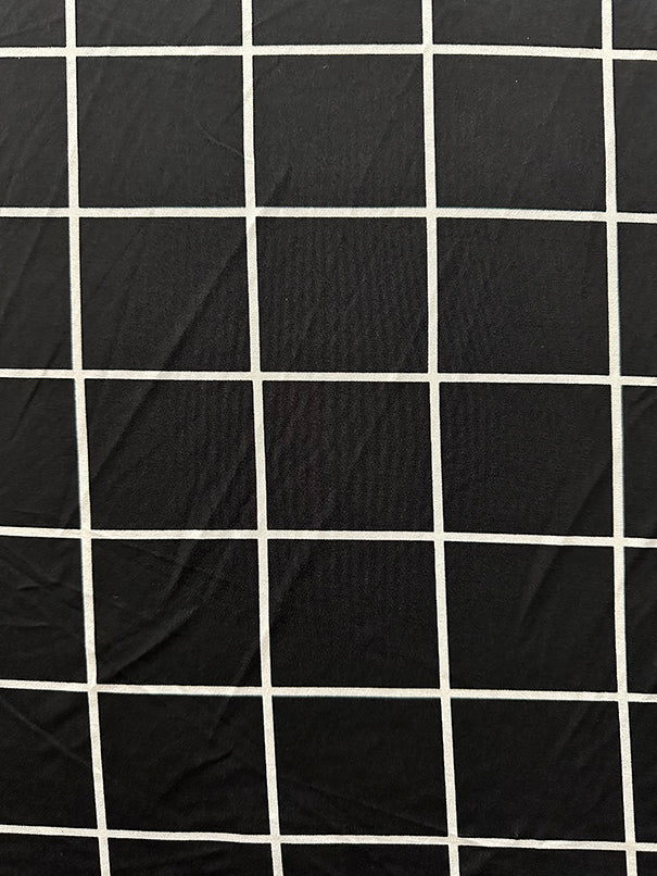 2 1/2 YD PC-White and Black Windowpane Check ITY Jersey Knit Fabric