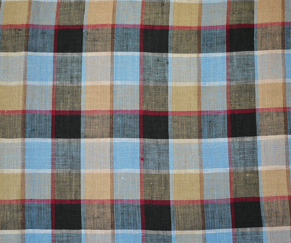 Blue-Beige-Multi Check Linen Woven Fabric