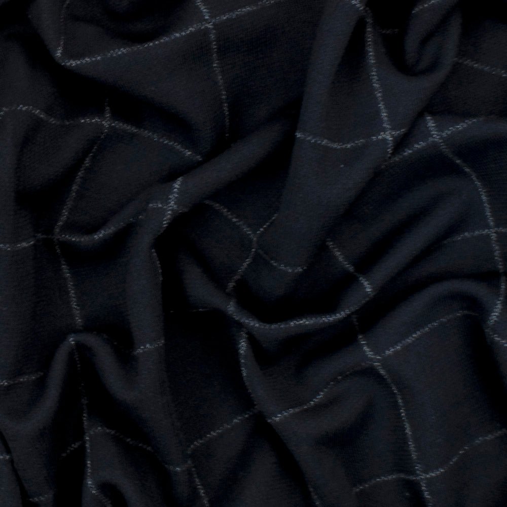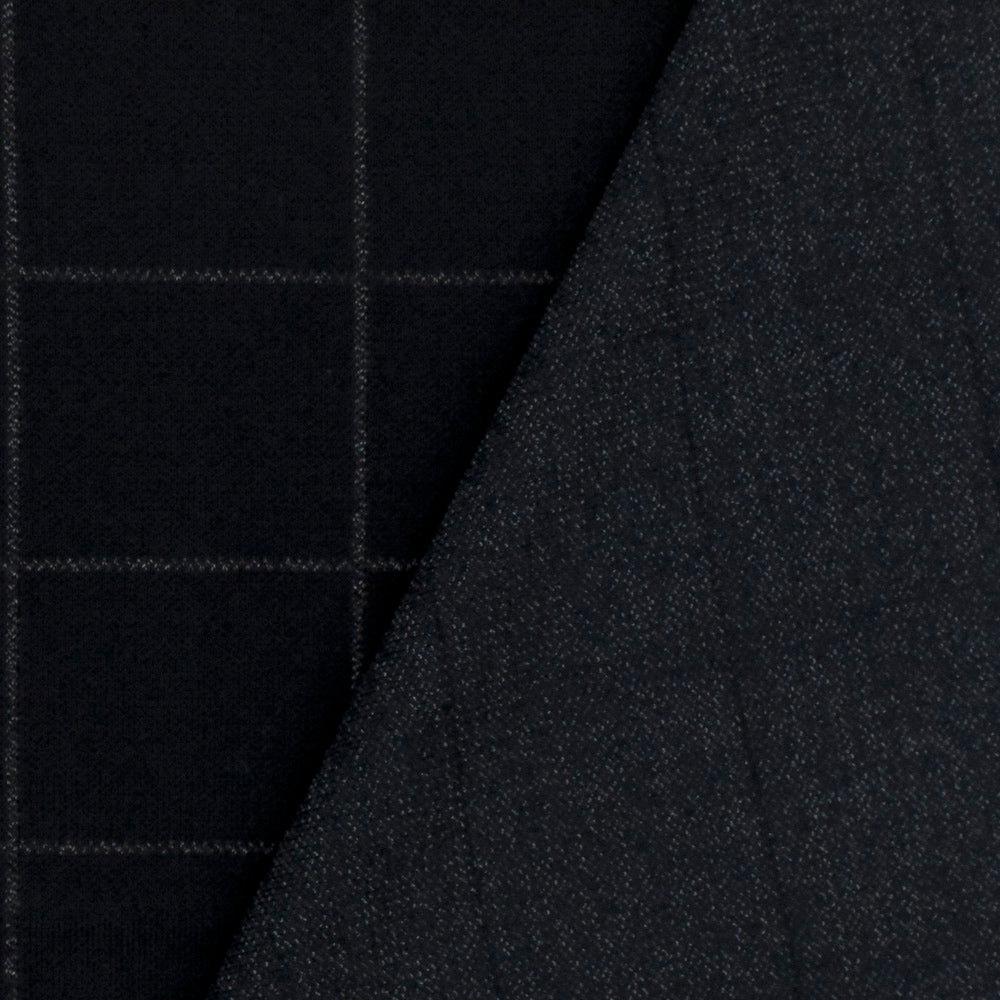 Deep Navy Blue-White Check Printed Cotton-Wool Matte Jersey Double Knit Fabric