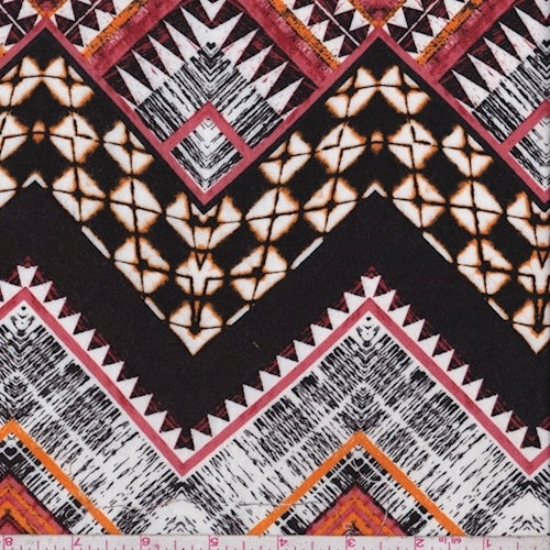 1 5/8 YD PC-Walnut/White/Salmon Tribal Chevron Rayon Challis Fabric