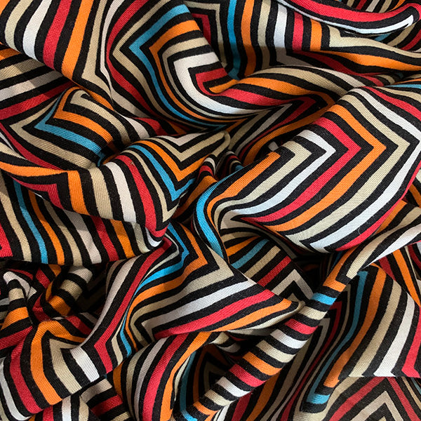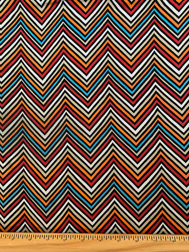 Beige Multi Chevron Print Rayon Challis Fabric