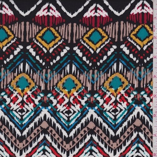 Black/Red Multi Southwest Chevron Rayon Challis Fabric