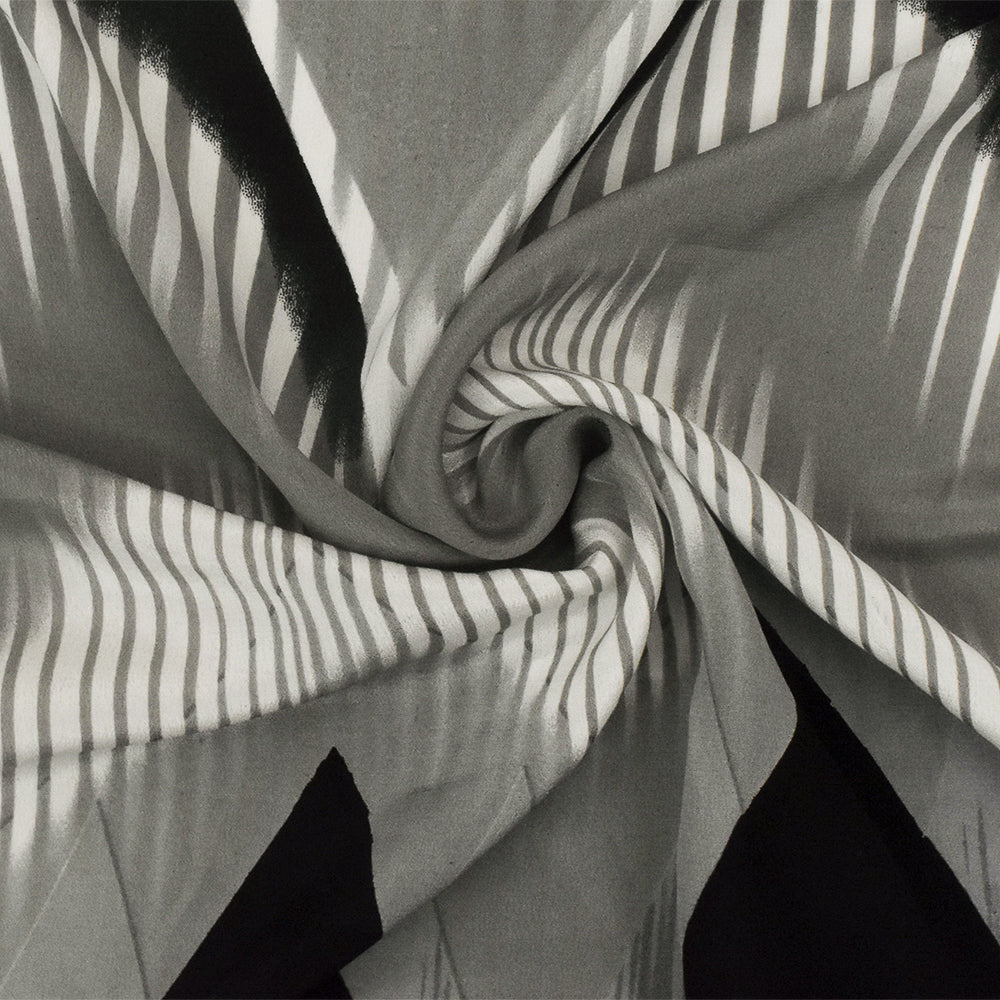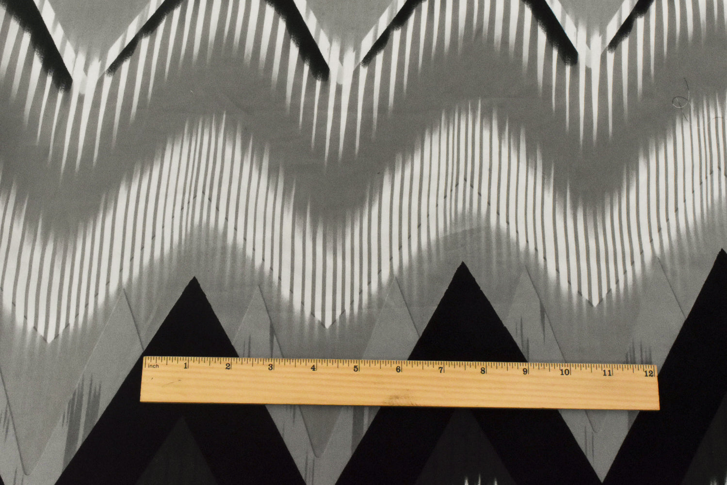 Space Gray-Black-Multi Abstract Chevron Print Silk Faille Woven Fabric