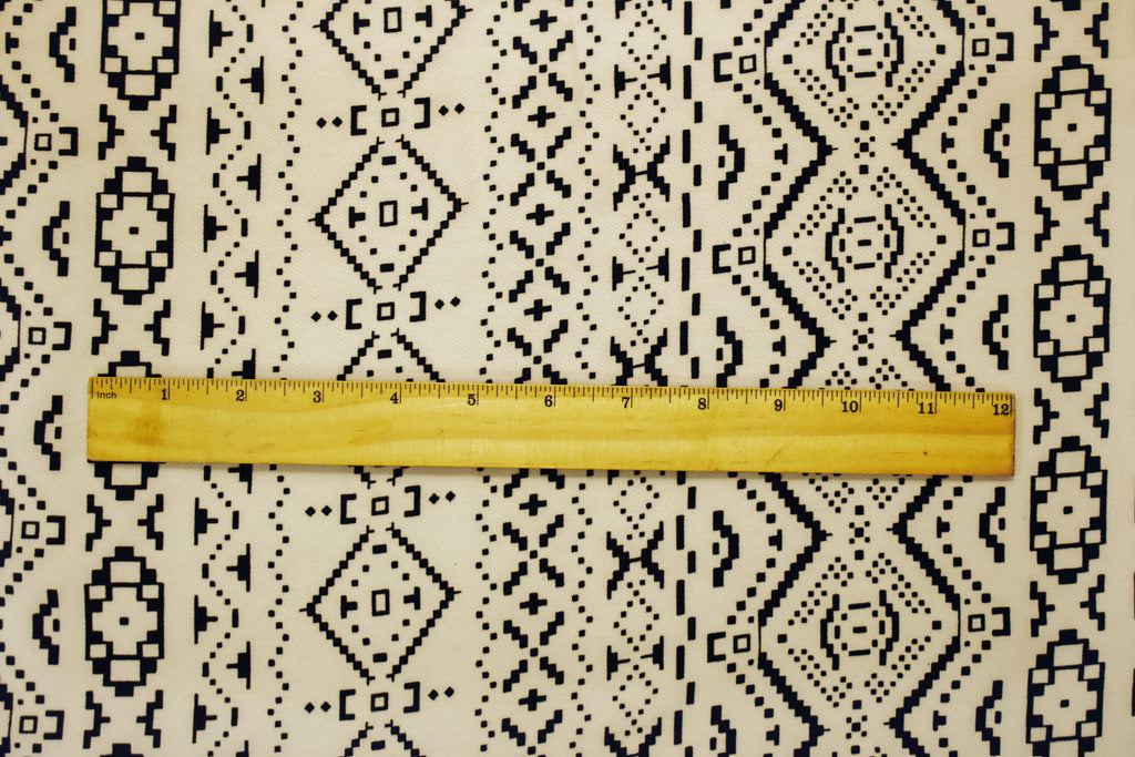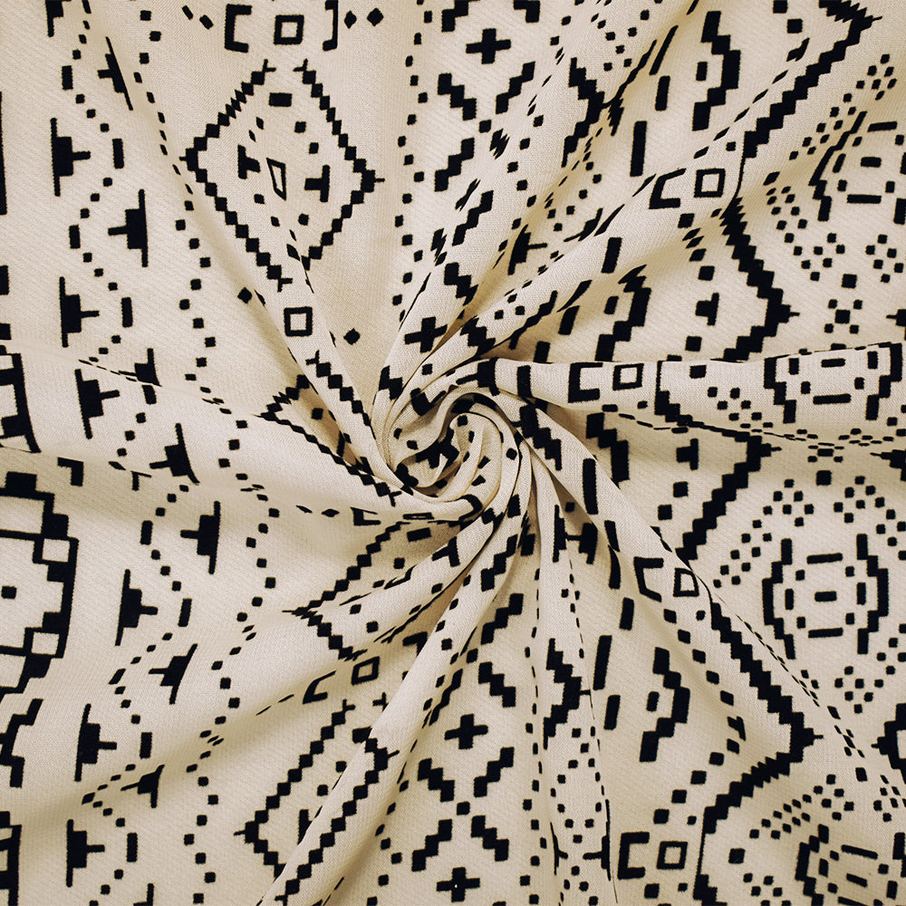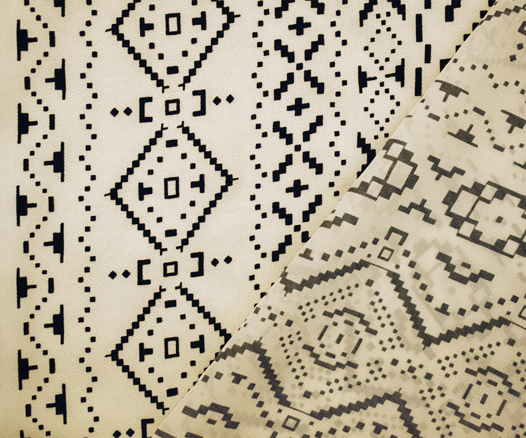 Beige-Black Polyester Aztec Velvet Flocked Printed Chiffon Woven Fabric