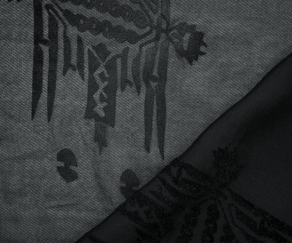 -100% polyester chiffon woven fabric velvet flocked with Aztec inspired motifs