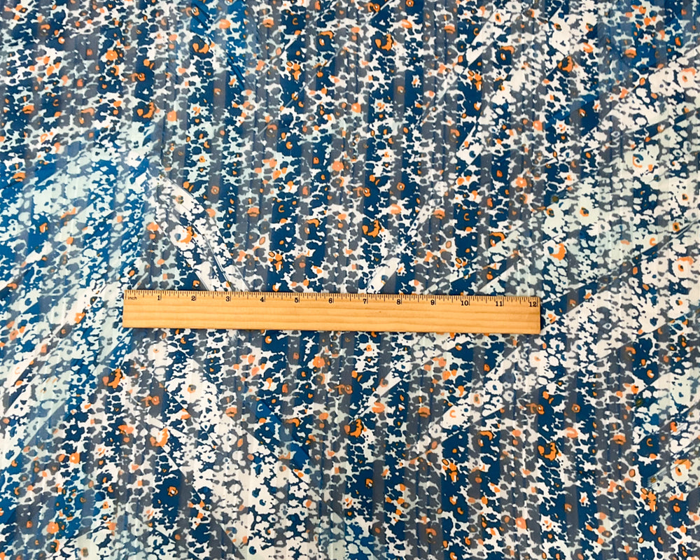 Blue-Multi Poly Floral Printed Satin Stripe Chiffon Woven Fabric