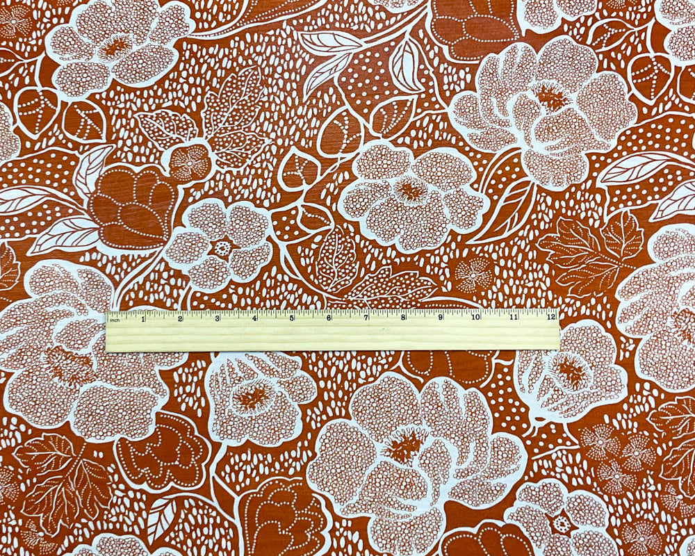 Brown-White Poly Floral Printed Chiffon Woven Fabric