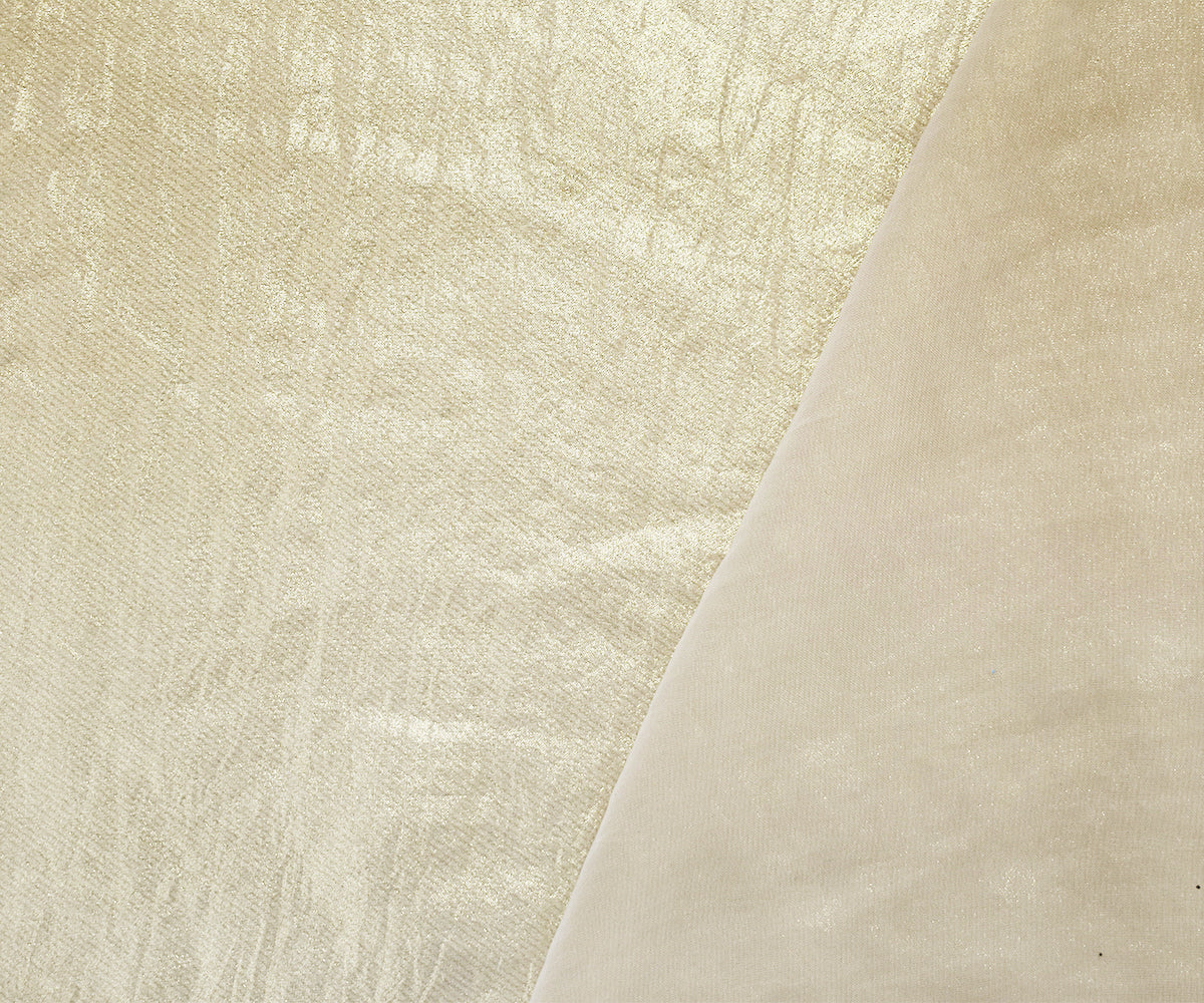 -100% Polyester sheer chiffon woven fabric overprinted with a translucent gold shimmer
