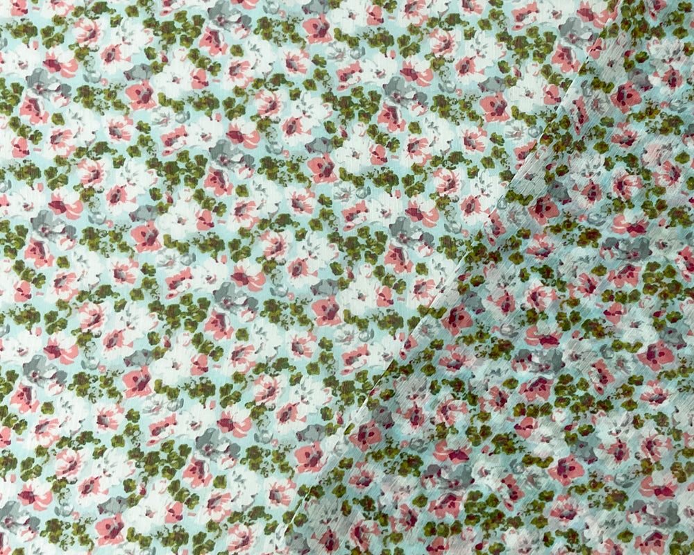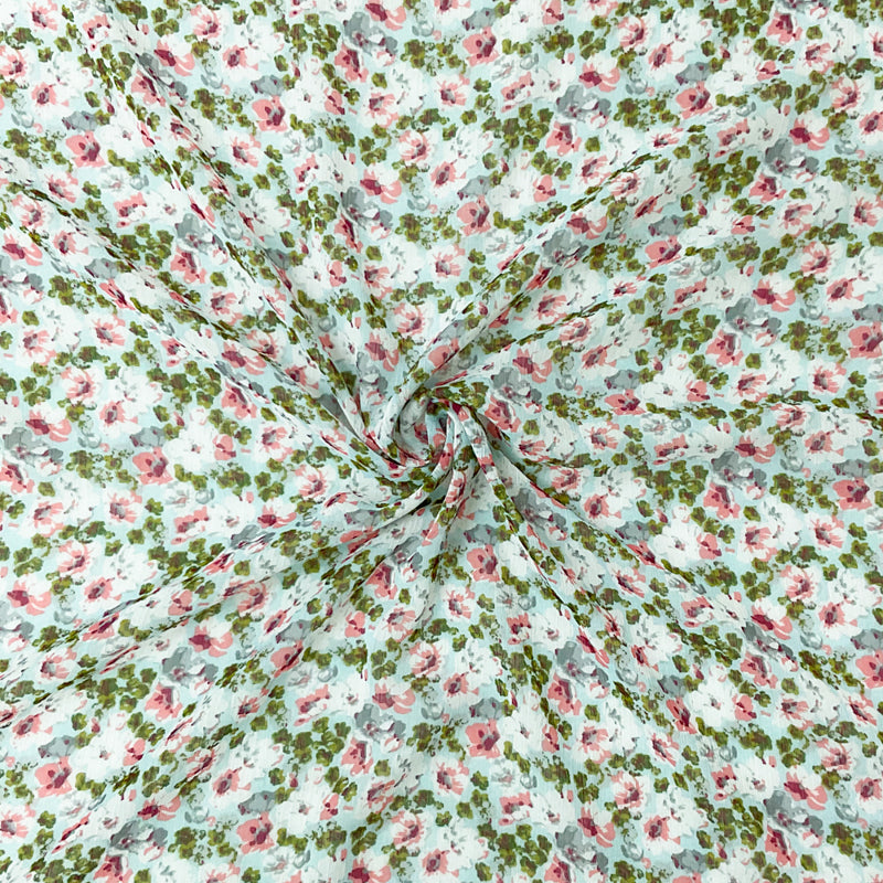 Orange-Multi Poly Floral Print Crinkle Yoryu Chiffon Woven Fabric
