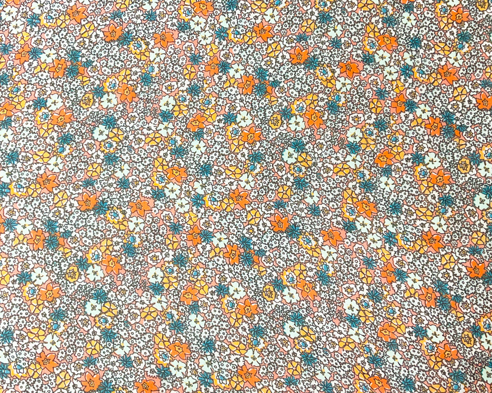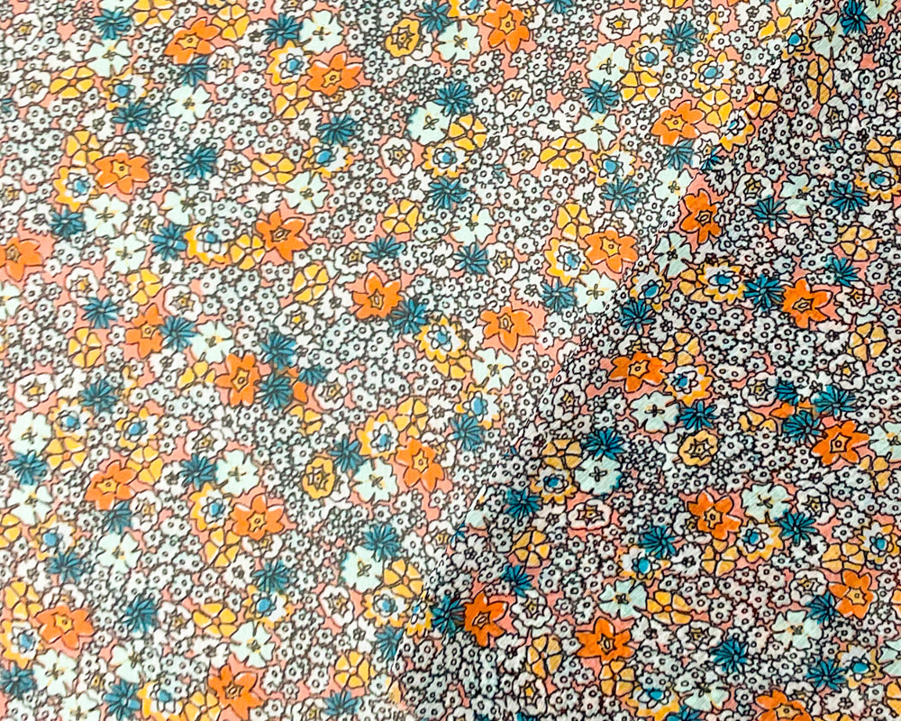 Orange-Multi Poly Floral Print Crinkle Yoryu Chiffon Woven Fabric