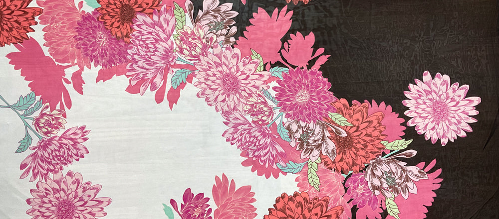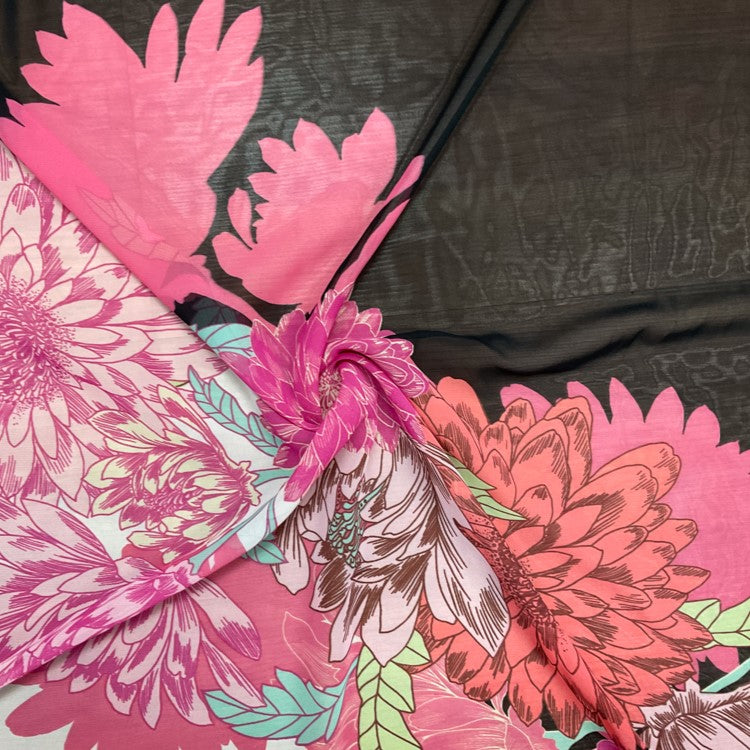 Pink-White-Multi Poly Floral Printed Chiffon Woven Fabric