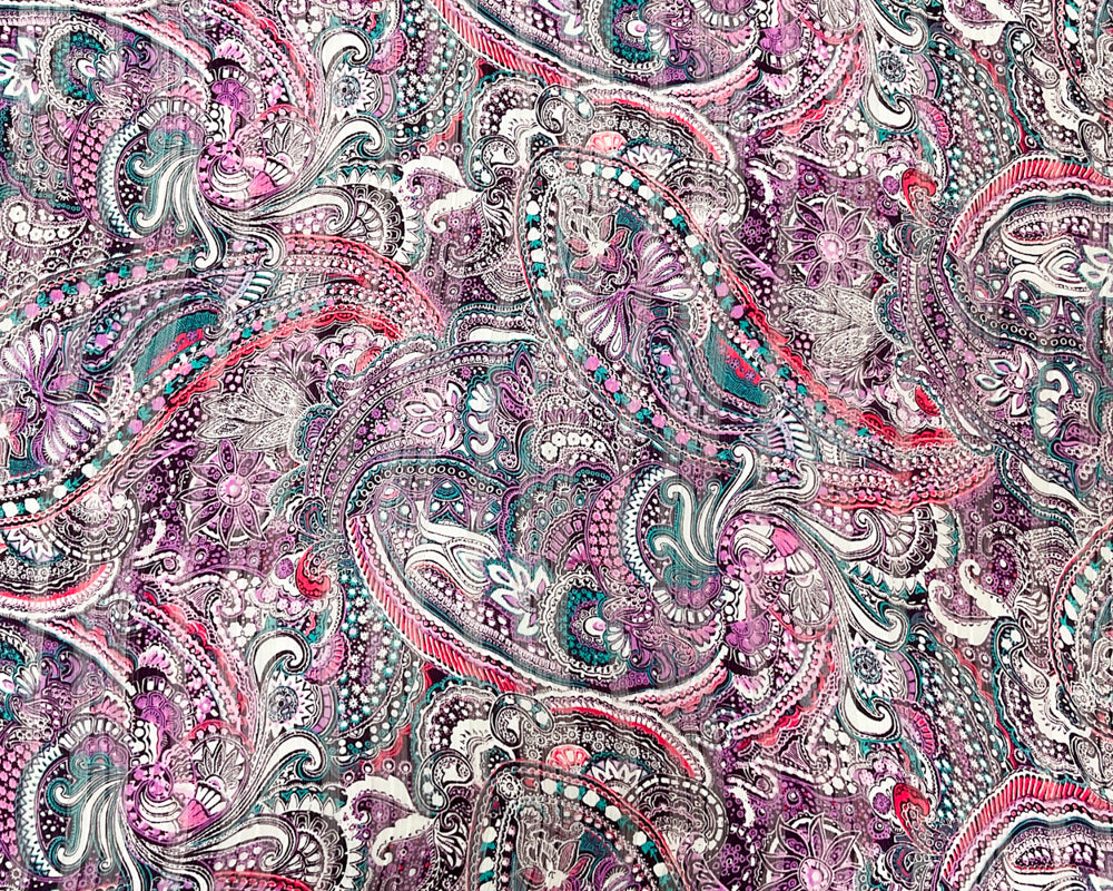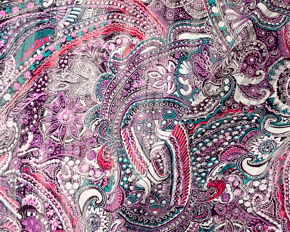 Purple-Multi Poly Paisley Print Satin Stripe Chiffon Woven Fabric
